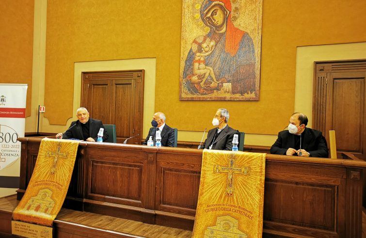 “Sarà un tempo per rinnovare l’affetto e l’amore alla cattedrale che ci unisce tutti. Si rinsalderà la comunione di cui abbiamo sempre bisogno, per i presbiteri, ma anche per la società civile”. Così questa mattina mons. Francesco Nolè, arcivescovo di Cosenza-Bisignano, nella conferenza stampa di presentazione delle iniziative per gli 800 anni della cattedrale di Cosenza, al via il prossimo 30 gennaio. “La Chiesa è un giardino di tanti fiori, e noi vogliamo costruire questo giardino, bello e ricco, per significare la bellezza della nostra città, della nostra Chiesa, della diocesi”, ha detto il presule. Per questo, mons. Nolè ha evidenziato “l’importanza della peregrinatio dell’icona di Maria del Pilerio, che ha raccolto la devozione dei cittadini. Gli 800 anni saranno l’occasione per le parrocchie di restituire la visita di Maria con il pellegrinaggio in cattedrale”. Sottolineando la convergenza di realtà sociali cittadine verso la chiesa madre bruzia, mons. Nolè ha evidenziato che “questa sinergia tra le varie forze culturali, ecclesiali, politiche e civili ci insegnano che non potremo più lavorare da soli, ma dovremo essere uniti per il bene comune. Il positivo che dobbiamo trarre da questa pandemia è la convinzione che non solo non possiamo lavorare da soli, ma è opportuno mettere insieme le energie, perché le nostre diversità sono una ricchezza”. Durante la conferenza stampa è intervenuto anche don Luca Perri, parroco-rettore della cattedrale di Cosenza: “Lo scopo di questo anno celebrativo è far vivere la vocazione dimensione spirituale dell’uomo, direzione comunitaria e dimensione storico-monumentale. La cattedrale è un libro aperto, è un libro che parla”. Per l’occasione la Penitenzieria apostolica ha concesso l’indulgenza plenaria dal 30 gennaio prossimo al 12 febbraio 2023, giorno della festa della Madonna del Pilerio. Il 30 gennaio, alle 18, sarà presente il nunzio apostolico per l’Italia, mons. Paul Emil Tscherrig, per l’apertura della Porta santa.