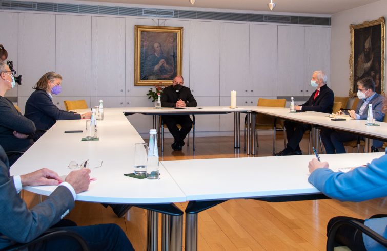 Oggi, in occasione della festa di San Francesco di Sales, patrono dei giornalisti, il vescovo di Bolzano-Bressanone, mons. Ivo Muser, a causa delle limitazioni dovute alla pandemia, ha tenuto un colloquio ristretto con una delegazione rappresentativa degli operatori della comunicazione. All’incontro negli uffici del vescovo erano presenti per l’Ordine regionale dei giornalisti Elisabeth Mair (presidente) e Gianfranco Benincasa (consigliere), il rappresentante delle minoranze linguistiche nel Consiglio nazionale Markus Perwanger, il vicesegretario del Sindacato regionale Patrick Rina, la presidente di Assostampa Bolzano Diana Benedetti e il presidente del Comitato provinciale comunicazioni Roland Turk.
