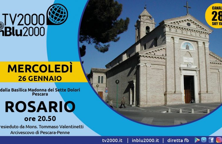 Torna l’appuntamento con “Prega con noi”. Tv2000 e InBlu2000 invitano i fedeli, le famiglie e le comunità religiose a ritrovarsi oggi, mercoledì 26 gennaio, alle 20.50, per recitare insieme il Rosario trasmesso su Tv2000 (canale 28 e 157 Sky) e InBlu2000, oltre che su Facebook. La preghiera sarà trasmessa dalla basilica Madonna dei Sette Dolori di Pescara, con mons. Tommaso Valentinetti, Arcivescovo di Pescara-Penne.