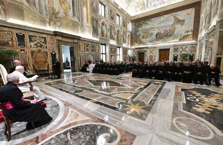 “Chi rimane attaccato alle proprie sicurezze rischia di cadere nella sclerocardia, che impedisce l’azione dello Spirito nel cuore umano”. È il monito del Papa ai Redentoristi, ricevuti oggi in udienza. “La Chiesa e la vita consacrata stanno vivendo un momento storico unico, in cui hanno la possibilità di rinnovarsi per rispondere con fedeltà creativa alla missione di Cristo”, la tesi di Francesco nel discorso scritto e consegnato: “Questo rinnovamento passa attraverso un processo di conversione del cuore e della mente, di intensa metanoia, e anche attraverso un cambiamento di strutture”. “A volte abbiamo bisogno di rompere le vecchie anfore, ereditate dalle nostre tradizioni, che hanno portato tanta acqua ma hanno ormai compiuto la loro funzione”, l’invito del Papa: “E spezzare le nostre anfore, piene di affetti, di usanze culturali, di storie, non è un compito facile, è doloroso, ma è necessario se vogliamo bere l’acqua nuova che viene dalla sorgente dello Spirito Santo, fonte di ogni rinnovamento”. “Non dobbiamo mettere ostacoli all’azione rinnovatrice dello Spirito, prima di tutto nei nostri cuori e nei nostri stili di vita”, l’indicazione di rotta: “Solo così diventiamo missionari di speranza! L’abbandono della vita comunitaria e della preghiera è la porta della sterilità nella vita consacrata, la morte del carisma e la chiusura verso i fratelli. Invece la docilità allo Spirito di Cristo spinge a evangelizzare i poveri, secondo l’annuncio del Redentore nella sinagoga di Nazaret, concretizzato nella congregazione da sant’Alfonso Maria de’ Liguori”. “Coloro che si appropriano della funzione di leadership per un interesse personale non servono il Signore”, il monito finale.