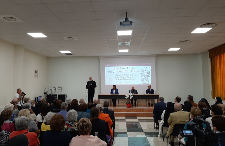 “Il fuoco ardente che brucia, nascosto in quella corona che scorriamo tra le dita, è la ragione stessa del nostro santuario ed è la ragione che ha portato tutti noi ad essere qui, stasera, nel 20° anniversario della Lettera apostolica ‘Rosarium Virginis Mariae’”. Lo ha detto, ieri sera, mons. Tommaso Caputo, arcivescovo prelato di Pompei, dando inizio al convegno “Contemplare Gesù con gli occhi di Maria”, promosso nella cittadina mariana, in occasione dell’Anno longhiano – iniziato lo scorso 1° ottobre per ricordare l’arrivo del beato Bartolo Longo a Pompei, avvenuto nel mese del Rosario del 1872 – e a distanza di vent’anni dal 16 ottobre 2002 quando san Giovanni Paolo II firmò, durante l’udienza generale in piazza San Pietro, la Lettera apostolica “Rosarium Virginis Mariae” dedicata al Santo Rosario. “Centocinquant’anni fa – ha proseguito il presule – il giovane avvocato giungeva, per motivi professionali, nella Valle che egli stesso definì ‘desolata’, abitata da alcune centinaia di contadini costretti a convivere con la malaria e con le ruberie di briganti. In quell’ottobre del 1872, Bartolo Longo ascoltò un’ispirazione interiore, che non finiremo mai di ripetere: ‘Se cerchi salvezza, propaga il Rosario. È promessa di Maria. Chi propaga il Rosario è salvo!’. Egli, sospinto dallo Spirito Santo, interiorizzò quelle parole e scoprì la volontà di Dio su di lui. Non lasciò più Pompei. Da quel momento e per tutta la sua lunga vita, nella costante fedeltà all’ispirazione iniziale, egli divenne strumento di un progetto di Dio, mediato da Maria; un progetto ogni giorno più sorprendente e degno di stupore”. E, ha aggiunto, “quale progetto! Senza il Rosario non ci sarebbe stato l’arrivo a Pompei, il 13 novembre 1875, dell’icona che tutti veneriamo e non ci sarebbero state altre pietre miliari, come l’inizio della costruzione del santuario, l’8 maggio 1876, o l’inaugurazione della prima delle numerose opere di carità, l’orfanotrofio femminile, l’8 maggio 1887. Senza il Rosario non sarebbe sorta la nuova Città di Pompei, costituita Comune nel 1928”. Di Longo parlò anche Papa Benedetto XVI che, il 19 ottobre 2008 fu pellegrino a Pompei. L’arcivescovo Caputo ne ha ricordato le parole: Longo “spinto dall’amore, fu in grado di progettare una città nuova, che poi sorse attorno al santuario mariano, quasi come irradiazione della sua luce di fede e di speranza. Una cittadella di Maria e della carità, non però isolata dal mondo, non, come si suol dire, una ‘cattedrale nel deserto’, ma inserita nel territorio di questa Valle per riscattarlo e promuoverlo […] Chi avrebbe potuto pensare che qui, accanto ai resti dell’antica Pompei, sarebbe sorto un santuario mariano di portata mondiale? E tante opere sociali volte a tradurre il Vangelo in servizio concreto alle persone più in difficoltà? Dove arriva Dio, il deserto fiorisce!”.