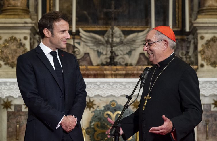 Quindi, il presidente Macron ha fatto un breve giro nella cattedrale di Roma, fermandosi a salutare alcuni turisti francesi, sostando davanti alla cattedra e in particolare davanti alla statua di Enrico IV, nel portico del transetto di fronte all’obelisco.