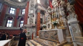 “Questi – ha detto nella meditazione pronunciata in chiesa – sono i giorni di Maria, in cui l’umanità sta di fronte a Dio come umanità femminile e in cui si ricorda che il centro dell’alleanza è l’incarnazione. Noi abbiamo bisogno di riscoprire la dimensione femminile, in tutte le sue sfaccettature: è lì che nasce il futuro dell’umanità. È dal sì di Maria, ma è anche dal sì di ogni donna che accetta di accogliere la vita che si costruisce l’oggi e il domani”. Con riferimento a Venezia e al mondo, Moraglia ha proseguito: “La nostra città sta sollevando il capo, dopo prove ripetute. Dopo le acque grandi, la pandemia e il lockdown protratto, Venezia sta sollevando il capo; questo, perciò, è il momento di essere generosi e di alzare lo sguardo là dove ci sono ancora situazioni drammatiche di crisi. Il ponte che abbiamo inaugurato e percorso ci richiama alla necessità di essere ‘ponti’ nei confronti soprattutto delle popolazioni provate dalla guerra”. In questo essere “ponti” c’è “spazio per le iniziative concrete – solidali, politiche, culturali… – e c’è spazio anche per la preghiera”, perché “sopra a tutto c’è Dio che deve vegliare sul cuore delle persone: è lì, infatti, che nascono – nel piccolo e nel grande – il bene e il male”.