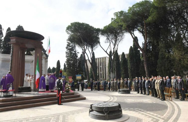 “La morte non può non deludere, contraria com’è al germe di vita e di eternità di cui la natura umana è impregnata. Siamo fatti per il Cielo: ecco il motivo della delusione dinanzi alla violenza interpersonale, sociale, politica; alla guerra che bussa minacciosa proprio quando ricordiamo il sacrificio di tanti nostri fratelli militari, morti anche in guerre che sembravano ormai superate. Siamo fatti per il Cielo: ma ecco anche il motivo della nostra speranza”: lo ha detto l’arcivescovo ordinario militare per l’Italia, mons. Santo Marcianò, celebrando oggi, al sacrario militare del Verano, la messa in ricordo dei caduti. Erano presenti il capo di Stato maggiore della Difesa, ammiraglio Giuseppe Cavo Dragone, il comandante del Comando militare della Capitale, generale di Corpo d’Armata Rosario Castellano, e gli altri vertici delle diverse Forze armate. La speranza, ha spiegato l’arcivescovo castrense, “in certo senso, ‘vede’, oltre le cose e le persone, oltre il dolore e la morte. ‘Vede’ l’invisibile; vede il germe di eternità che è in noi e da quello ricomincia sempre: il germe della Risurrezione di Cristo, nostra speranza. E la Risurrezione non appartiene solo alla vita futura. È realtà”. Il pensiero di mons. Marcianò è andato “al rapporto tra la speranza e la pace, che oggi affligge il mondo e ci interpella particolarmente a essere, da militari, testimoni di speranza”. E ricordando il Concilio Vaticano II ha poi aggiunto: “Come la speranza, infatti, ‘la pace non è mai acquisita una volte per tutte ma si deve costruire continuamente’, promuovendo il ‘bene comune’ che, pur ‘regolato dalla legge eterna… è soggetto, per quanto riguarda le sue esigenze concrete, a continui cambiamenti’; soprattutto, assicurando ‘il bene delle persone’, ‘l’impegno di ritener sacra la loro dignità’, ‘la fratellanza’… frutti dell’amore del prossimo. È l’amore che dona speranza e ci rende testimoni di speranza. È per il loro amore che oggi ringraziamo i nostri cari defunti e i caduti che, per amore, hanno donato la vita, divenendo seme di pace”.