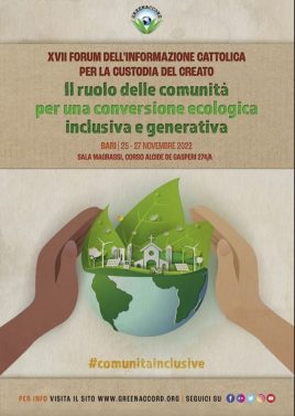 “Ieri la crisi economica e quella pandemica poi; oggi quella bellica interconnessa a quella energetica. Per le giovani generazioni si tratta di una ‘crisi permanente’. Tanto che il neologismo ‘permacrisi’, coniato dal dizionario britannico Collins, è diventato ‘la parola dell’anno 2022’, perché descrive nitidamente la preoccupazione dei popoli mondiali. Ma, di fronte a qualsiasi crisi, bisogna reagire, cercare di trasformarla in un’opportunità. Non è urgente solo la conversione etica ed ecologica dei nostri stili di vita individuali, dobbiamo tornare alla prossimità e alla gratuità tipiche della vita di comunità. Perché, come dice Papa Francesco, nessuno è un’isola, nessuno si salva da solo”. È questa – spiega Alfonso Cauteruccio, presidente di Greenaccord onlus – la riflessione che sta alla base dei temi scelti per il XVII Forum dell’informazione cattolica per la custodia del Creato. L’appuntamento, dal titolo “Il ruolo delle comunità per una conversione ecologica inclusiva e generativa”, si tiene a Bari, dal 25 al 27 novembre, nell’auditorium “Mons. Magrassi”. Ha il sostegno dell’arcidiocesi di Bari-Bitonto e del Consiglio della Regione Puglia.