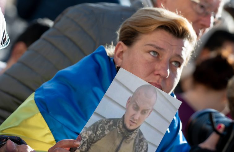 Questa mattina in piazza San Pietro, a margine dell’udienza generale di Papa Francesco che ha nuovamente esortato tutti a pregare per la pace nel mondo e per la fine di tutti i conflitti, concentrandosi particolarmente sulla “martoriata Ucraina” e sull’anniversario del genocidio del Holodomor causato artificiosamente da Stalin proprio in Ucraina, tra le persone sono apparse bandiere gialle e blu e foto di giovani militari scomparsi durante il conflitto iniziato a fine febbraio scorso. A tendere in alto le immagini, appena sopra la bandiera dell’Ucraina riportante il reggimento di appartenenza, le mani di una mamma e di una nonna di uno dei 23 giovani dispersi. “Noi non sappiamo dove e come stanno, vivi o non vivi”, sono le parole della nonna in lacrime che vorrebbe raggiungere Papa Francesco per chiedergli di aiutarle, “vogliamo sapere dove sono i nostri figli, i nostri nipoti”.