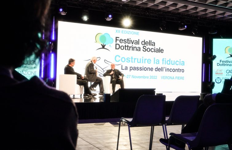 (da Verona) “La paura può servire a salvarsi la vita in qualche circostanza, ma non può permettere di ricostruire una società. Per ricostruirla non è sufficiente la paura, serva la speranza, la fiducia nell’altro e la possibilità di camminare insieme”. Lo ha affermato ieri sera mons. Giuseppe Baturi, arcivescovo di Cagliari e segretario generale della Cei, intervenendo alla serata inaugurale della XII edizione del Festival della Dottrina sociale che si svolgerà fino a domenica nella città scaligera sul tema “Costruire la fiducia – La passione dell’incontro”.