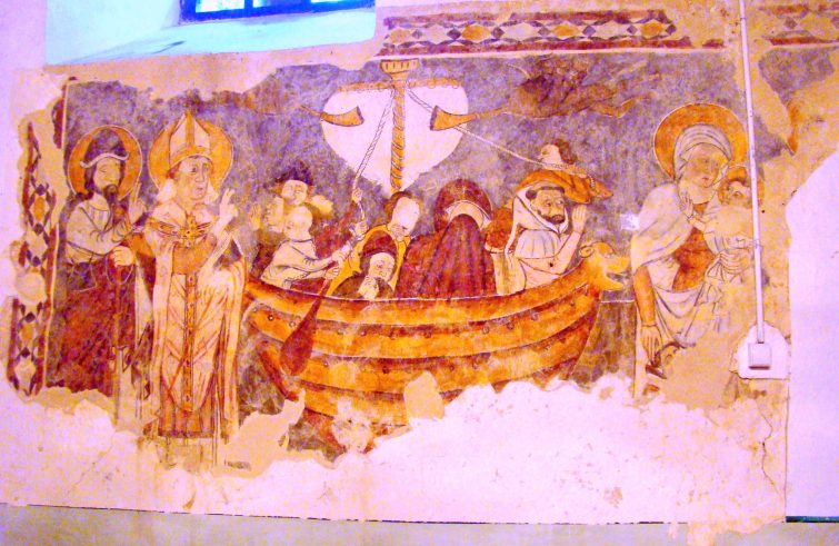 La chiesa di Viștea si trova a circa 14 km da Cluj-Napoca, nell’ovest della Romania, e fu costruita intorno al 1240. Inizialmente cattolica, nel periodo interbellico la chiesa è diventata riformata magiara è le pitture murali furono coperte da intonaco. Ricerche realizzate negli ultimi vent’anni da esperti romeni e ungheresi, sotto il patrocinio della Fondazione “Teleki László” e con l’aiuto economico del governo ungherese, hanno cominciato a portare alla luce le pitture originali e oggi tanti murales possono essere ammirati e studiati. Tra i dipinti si distingue una scena ispirata alla “Navicella” di Giotto, realizzata secondo una interpretazione propria dell’artista locale. La possibilità di datare ora le pitture intorno al 1330 colloca la realizzazione della “navicella” della Chiesa di Viștea in un periodo vicino all’originale di Giotto. Inoltre la datazione dei murales di Viștea apre la strada per le ricerche su altre pitture murali in antiche chiese del Paese. Le ricerche nella Chiesa di Viștea continueranno e gli esperti sono sicuri di poter trovare altri elementi importanti.