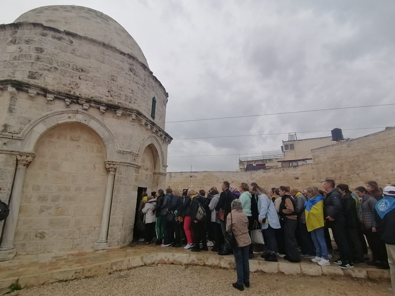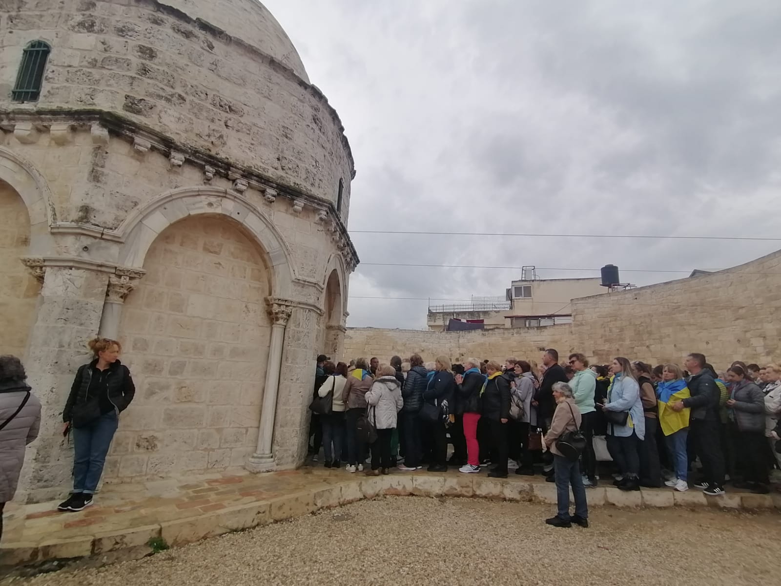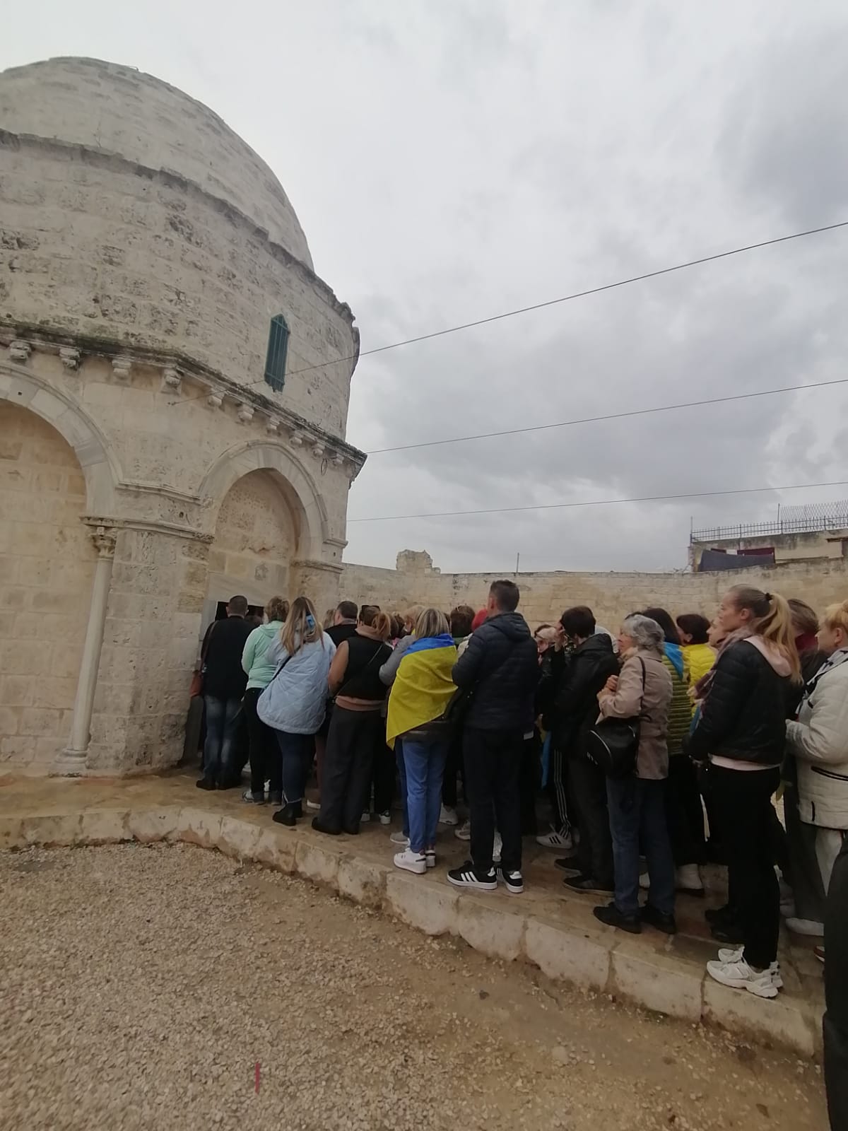 Ci sono anche pellegrini ucraini in preghiera al santuario dell’Ascensione, a Gerusalemme. Sono sfollati che vengono da Kiev, Leopoli, Mykolaïv, Zaporizhzhia, e hanno trovato accoglienza in Italia. Sono qui da una settimana e pregano per la salvezza del loro Paese. Chiedono giustizia perché la pace dovrà essere giusta. Pregano per i loro cari rimasti in patria. “Siamo preoccupati”, dicono, “perché stanno per arrivare forti attacchi russi”.