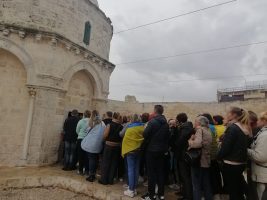 Il gruppo pellegrini è costituito da 100 persone. Tutte donne e qualche bambino. Quando escono dalla cappella del Ascensione hanno gli occhi pieni di lacrime.