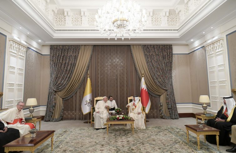 “Sono qui, nella terra dell’albero della vita, come seminatore di pace, per vivere giorni di incontro, per partecipare a un Forum di dialogo tra Oriente e Occidente per la pacifica convivenza umana”. Lo ha spiegato il Papa, che fin dal suo primo discorso in Bahrein ha ringraziato i suoi “compagni di viaggio, in modo speciale i rappresentanti religiosi”. “Questi giorni segnano una tappa preziosa nel percorso di amicizia intensificatosi negli ultimi anni con vari capi religiosi islamici”, ha assicurato Francesco: “un cammino fraterno che, sotto lo sguardo del Cielo, vuole favorire la pace in Terra”. Di qui l’apprezzamento del Pontefice “per le conferenze internazionali e per le opportunità d’incontro che questo Regno organizza e favorisce, mettendo specialmente a tema il rispetto, la tolleranza e la libertà religiosa”. “Sono temi essenziali, riconosciuti dalla Costituzione del Paese – ha sottolineato il Papa – la quale stabilisce che non vi deve essere alcuna discriminazione in base al sesso, alla provenienza, alla lingua, alla religione o al credo, che la libertà di coscienza è assoluta e che lo Stato tutela l’inviolabilità del culto”. Tutti impegni, per Francesco, “da tradurre costantemente in pratica, perché la libertà religiosa diventi piena e non si limiti alla libertà di culto; perché uguale dignità e pari opportunità siano concretamente riconosciute ad ogni gruppo e ad ogni persona; perché non vi siano discriminazioni e i diritti umani fondamentali non vengano violati, ma promossi”. “Penso anzitutto al diritto alla vita, alla necessità di garantirlo sempre, anche nei riguardi di chi viene punito, la cui esistenza non può essere eliminata”, il primo imperativo del Papa