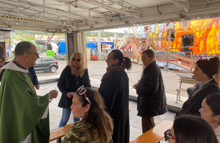 “Grazie della vostra preghiera e della vostra accoglienza. Siamo tutti alla ricerca di un posto e voi sapete quanto sia difficile trovare il posto in cui fermarsi. Almeno qui, nel Signore, celebrando l’Eucaristia tra le vostre attrazioni, un posto c’è per tutti. Nel Signore il posto c’è ed è un posto dove non ci sono tasse da pagare, c’è accoglienza, misericordia, perdono, solidarietà”. Sono queste le parole con le quali mons. Ivan Maffeis, arcivescovo di Perugia-Città della Pieve, si è rivolto oggi alle famiglie degli operatori dello spettacolo viaggiante del Luna Park, preoccupate per il caro bollette dell’energia elettrica che mette a rischio il lavoro di oltre 350 persone e che, come ogni anno da 99 anni per un mese tra ottobre e novembre, sostano a Perugia. “L’edizione 2023 sarà molto speciale, perché festeggeremo un secolo della nostra presenza a Perugia, un evento che pubblicizzeremo anche a livello nazionale e sarà una grande festa che coinvolgerà tutta la città”, ha dichiarato Enzo La Scala, portavoce del Luna Park, presente alla messa celebrata come ogni anno dall’arcivescovo di Perugia sulla pista di un autoscontro, assieme al parroco di Ferro di Cavallo don Francesco Medori, responsabile diocesano della pastorale per i circensi, fieranti e dello spettacolo viaggiante. “Sono contento di essere qui, in quest’ora in cui il Luna Park è fermo, c’è silenzio, perché dentro lo spettacolo viaggiante c’è la fatica di ogni giorno, quella che voi interpretate e portate avanti. Venendo qui la sera si entra, giustamente, in un mondo di luci, di movimento, di festa e si rischia di dimenticare quello che c’è dietro: la preoccupazione, il pensiero, il lavoro delle vostre famiglie. Credo che dietro a ciascuna di queste attrazioni ci sia la volontà di lavorare al meglio per offrire a noi un momento di distensione e di divertimento”, ha aggiunto mons. Maffeis che ha sottolineato l’abilità, la professionalità e l’artigianato dimostrato per far funzionare il tutto. “Io vi auguro che non vi manchi mai il fuoco, che è l’amicizia, la fraternità, la capacità di darsi la mano l’uno con l’altro… Non vi manchi mai il fuoco che è l’amore del Signore, perché – ha spiegato – quando c’è Lui riusciamo a portare i nostri problemi con un’altra forza e con un’altra fiducia, con la fiducia della sua provvidenza, con la fiducia della certezza che Lui non ci molla, non ci dimentica, non ci abbandona”. Grati per l’aiuto ricevuto dalla Caritas diocesana durante la fase acuta della pandemia, gli operatori del Luna Park hanno promosso una raccolta in denaro per le attività caritative della Chiesa perugino-pievese consegnata a mons. Ivan Maffeis, accompagnata da una lettera in cui esprimono la loro riconoscenza.