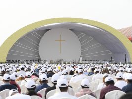 “Se si appartiene alla stessa famiglia o alla stessa nazione, se si hanno le stesse idee o gli stessi gusti, se si professa lo stesso credo, è normale cercare di aiutarsi e di volersi bene. Ma che cosa succede se chi è lontano si avvicina a noi, se chi è straniero, diverso o di altro credo diventa nostro vicino di casa?”. È un invito a non confinare l’amore nell’ambito “ristretto” di “chi ci è amico, dei nostri simili” quello lanciato questa mattina da Papa Francesco nell’omelia pronunciata alla Santa Messa celebrata al Bahrain National Stadium, ad Awali. “Proprio questa terra è un’immagine viva di convivialità delle diversità, del nostro mondo sempre più segnato dalla permanente migrazione dei popoli e dal pluralismo di idee, usi e tradizioni. È importante, allora, accogliere questa provocazione di Gesù: ‘se amate quelli che vi amano, quale ricompensa ne avete? Non fanno così anche i pubblicani?’”. “La vera sfida, per essere figli del Padre e costruire un mondo di fratelli, è imparare ad amare tutti, anche il nemico”, ha commentato il Papa. “Ciò, in realtà, significa – ha aggiunto – scegliere di non avere nemici, di non vedere nell’altro un ostacolo da superare, ma un fratello e una sorella da amare. Amare il nemico è portare in terra il riflesso del Cielo, è far discendere sul mondo lo sguardo e il cuore del Padre, che non fa distinzioni, non discrimina, ma ‘fa sorgere il suo sole sui cattivi e sui buoni, e fa piovere sui giusti e sugli ingiusti’”.