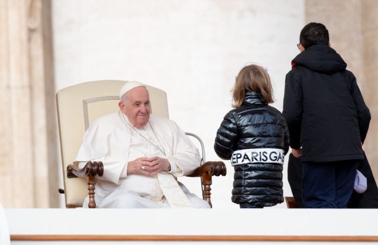 “Prima di parlare di quello che ho preparato, vorrei attirare l’attenzione su questi due bambini, ragazzi, che sono venuti qui. Loro non hanno chiesto permesso, non hanno avuto paura: sono venuti qui. Sono coraggiosi. E questo ci fa capire come dobbiamo comportarci con il Signore: avvicinarci con libertà. Ci hanno dato un esempio di come ci si comporta con Dio: è stato un esempio per tutti”. Lo ha detto, a braccio, il Papa, prima di cominciare la catechesi dell’udienza di oggi, dedicata alle tappe del suo viaggio apostolico in Bahrein. “Un pò freddino, no? Ma è bello”, il saluto alle migliaia di fedeli presenti in piazza San Pietro. I due bambini, un ragazzo e una ragazza, si sono seduti ai piedi della postazione di Papa Francesco, al centro del sagrato, e hanno seguito da lì parte della catechesi.