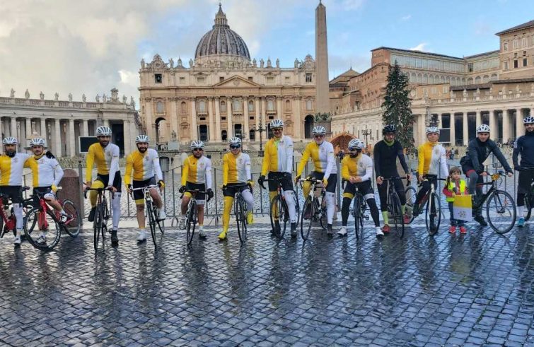 Partenza alle 9 da piazza San Pietro con un semplice momento insieme, nello stile di Athletica Vaticana: la Preghiera del ciclista, scaturita dall’esperienza spirituale del santuario della Madonna del Ghisallo, patrona dei “pedalatori” di tutto il mondo. Poi l’Ave Maria per il Papa e l’Ave Maria per la pace. Al simbolico “via” anche Alessia Trost a rilanciare il gemellaggio sportivo-solidale di Athletica Vaticana con le Fiamme Gialle, il gruppo sportivo della Guardia di Finanza: nel salto in alto è stata campionessa mondiale juniores e allieve. Dopo poche pedalate, davanti al cancello del Petriano, ecco l’abbraccio dei ciclisti – tra loro anche Rien Schurrhuis che a settembre ha corso i Campionati del mondo in Australia – con i volontari che stanno preparando la festa di Natale dei bambini e delle famiglie del Dispensario pediatrico “Santa Marta” che ci sarà domani mattina in Aula Paolo VI. “Due servizi che s’incrociano con lo stesso obiettivo, quasi un passaggio di testimone come in una staffetta solidale” dice Valentina Giacometti che collabora all’organizzazione della giornata per il Dispensario.
