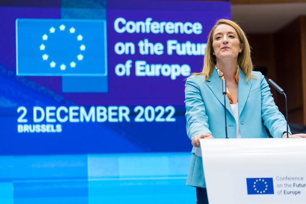 (Bruxelles) “Il Parlamento europeo mantiene la parola”. Lo ha affermato Roberta Metsola, presidente dell’Assemblea, aprendo oggi a Bruxelles l’evento di feedback della Conferenza sul futuro dell’Europa. Durata un anno, da maggio 2021 al maggio di quest’anno, la Conferenza aveva l’obiettivo di far dialogare le istituzioni dell’Ue e i cittadini, immaginando le riforme necessarie per rafforzare l’Europa comunitaria, porre i cittadini al centro del processo di integrazione e rispondere alle grandi sfide attuali: il sostegno al popolo ucraino e il tema, correlato, della sicurezza e della difesa in Europa; la sfida energetica; la pandemia Covid-19 e la progressiva costruzione di una comune politica sanitaria; gli interventi a sostegno dell’economia in recessione e la difesa dei posti di lavoro; la politica migratoria. E ancora, la protezione dei diritti dei cittadini, la tutela dell’ambiente, una politica estera europea su scala mondiale…
