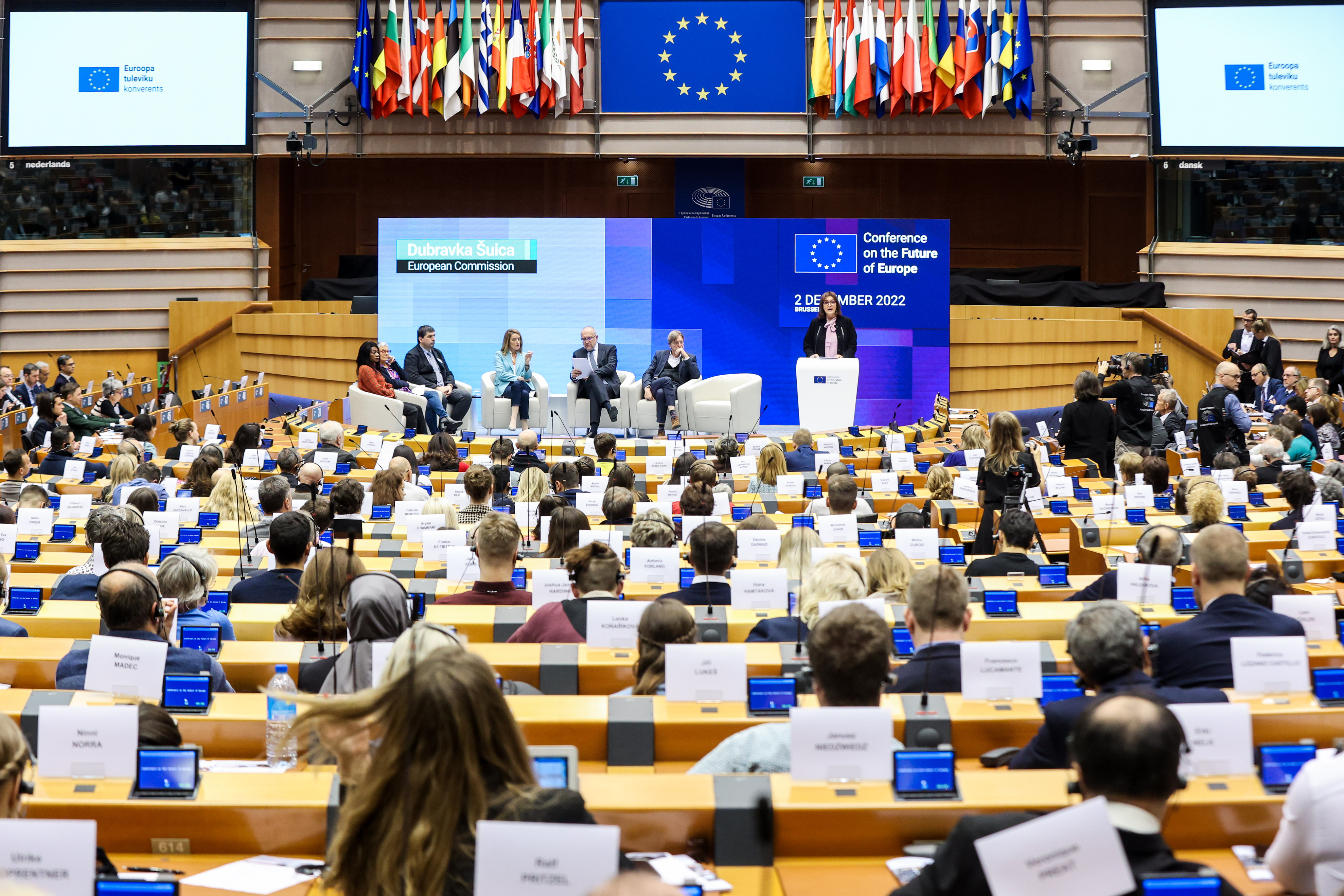 A Bruxelles i cittadini – ne sono presenti oltre 500 – fanno sentire la loro voce, insistendo sul fatto che le 49 proposte concrete emerse dalla Conferenza diventino realtà. Metsola dichiara che è tempo di convocare una Convenzione per il futuro dell’Europa. La Commissione Von der Leyen è d’accordo, ma il vero freno ai cambiamenti è ancora una volta rappresentato dal Consiglio, dove siedono i rappresentanti dei 27 Stati membri. I cittadini – molti i giovani arrivati a Bruxelles – chiedono più trasparenza, risultati concreti, riforme, tra le quali l’abolizione del voto all’unanimità in Consiglio e il potere di iniziativa legislativa per il Parlamento.