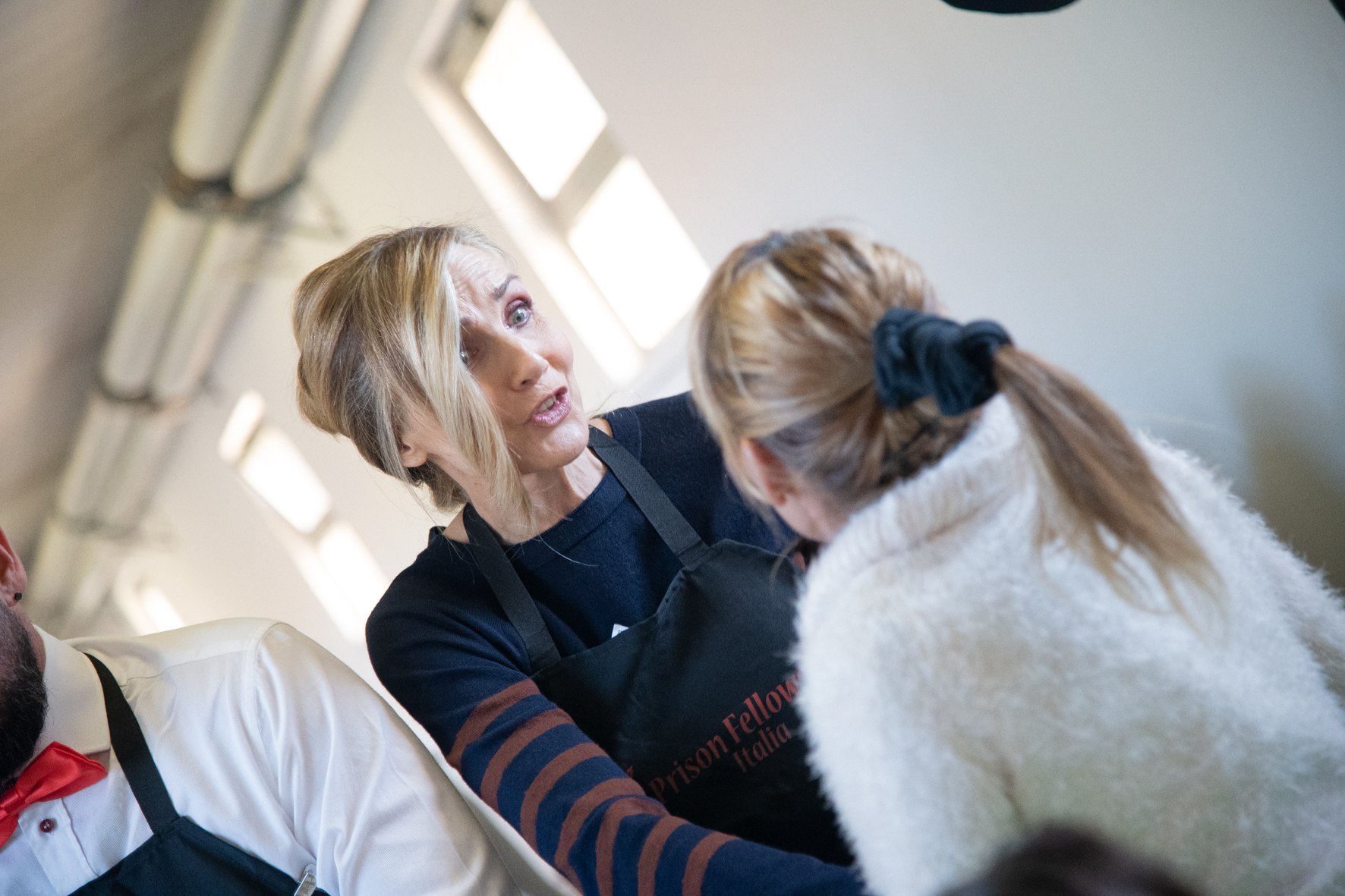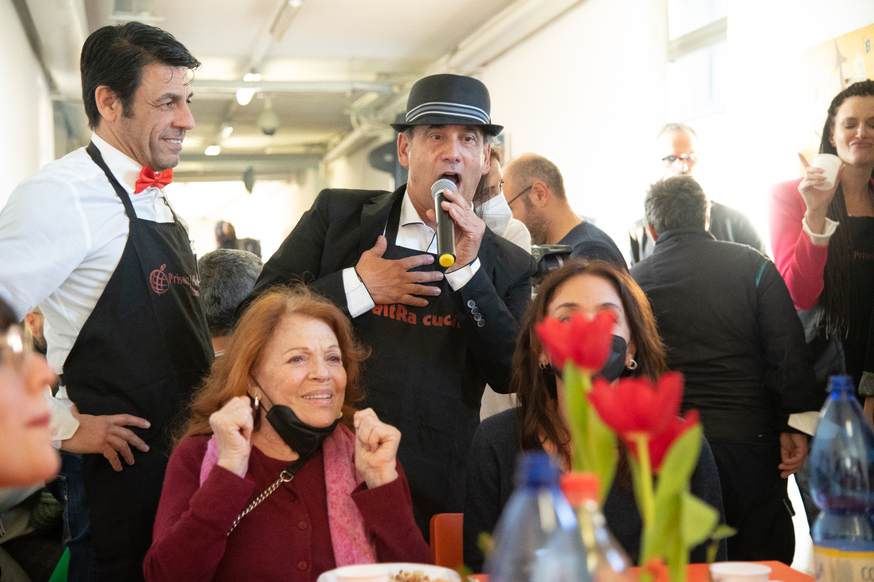 Sono state 230 a Roma le detenute che hanno partecipato al pranzo, gustando le portate preparate dallo chef Filippo La Mantia e, mentre il comico Antonio Giuliani proponeva alcuni sketch assieme a Massimo Mattia, nei panni di cameriere e camerieri di servizio ai tavoli si sono alternate Lorella Cuccarini, Gabriele Corsi e Laura Pertici, Stefano Jurgens, Ottavia Pojaghi Bettoni, Valeria Fabrizi, Maria Grazia Schiavo, Giulia Fiume, Kim Rossi Stuart, Ilaria Spada e Beatrice Fazi. “Oggi ci avete fatto il più bel regalo per i nostri 20 anni di matrimonio che festeggiamo qui in vostra compagnia”, sono state le parole di Gabriele Corsi rivolte alle detenute nella Casa circondariale. La giornata di festa romana si è svolta con un totale di circa 700 volontari impiegati per servire circa 6mila pasti anche in altri 20 carceri: Opera di Milano, Lorusso e Cutugno di Torino, Firenze, Massa, Bologna, Modena, Castelfranco Emilia, Pesaro, Secondigliano di Napoli, Salerno, Avellino, Aversa, Bari, Palmi, Vibo Valentia, Pagliarelli di Palermo, Siracusa, Cagliari, Nuoro e Lanusei.