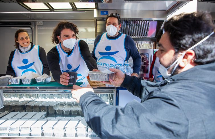 Presentato oggi davanti piazza San Pietro a Roma, il nuovo servizio della cucina mobile di Fondazione Progetto Arca onlus che, da questa sera, distribuirà pasti caldi alle persone senzatetto per le strade dei municipi I e XV, sostituendo il servizio offerto fino ad ora dai volontari con mezzi propri. “Da un giorno all’altro le persone in strada si sono trovate sole, senza la rete di supporto a loro conosciuta e necessaria per sopravvivere. Per la prima volta abbiamo incontrato persone senzatetto che non mangiavano da giorni”, le parole di Alberto Sinigallia, presidente di Progetto Arca, riportate nel comunicato stampa distribuito, “Da qui la decisione di non chiuderci in casa ma di inventarci qualcosa per star loro vicino. Abbiamo allora messo le ruote alla cucina: i senzatetto non potevano recarsi a una mensa e siamo andati noi da loro”. La cucina mobile è un foodtruck con fornelli, forno e bollitori a bordo, che segue le unità di strada di Progetto Arca, cioè i gruppi di volontari guidati da un operatore responsabile che consegnano direttamente in strada cene calde e complete, che vanno incontro alle esigenze culturali e religiose delle persone. Monoporzioni con primo e secondo, oltre che tè caldo e uno zainetto con la colazione per la mattina successiva. Prevista ogni settimana la preparazione e la distribuzione di 450 cene calde, e altrettante colazioni, dispensate in 4 sere in 2 quartieri della città: zona San Pietro, con la postazione fissa in via della Conciliazione, e zona Cassia – La Giustiniana (Municipio XV), dove è presente anche Casa Arca. Oltre che a Roma la cucina mobile si trova anche a Milano, Varese, Torino e, entro l’anno, anche in altre città, tra le quali Napoli. Presenti all’inaugurazione del nuovo servizio il presidente Alberto Sinigallia assieme ad una delegazione di operatori e volontari di Progetto Arca, i donatori delle aziende Incomedia, Unilever, Unione buddhista italiana, Doppio malto, General Beverage e Barbara Funari, assessora alle politiche sociali e alla salute di Roma.