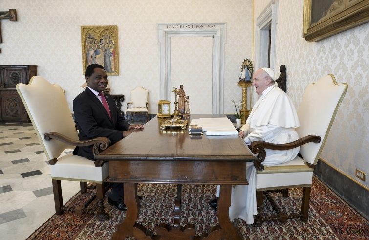 Oggi, 19 febbraio2, Papa Francesco ha ricevuto in udienza, nel Palazzo apostolico vaticano, il presidente della Repubblica di Zambia, Hakainde Hichilema, il quale si è successivamente incontrato con il card. Pietro Parolin, segretario di Stato di Sua Santità, accompagnato da mons. Mirosław Wachowski, sotto-segretario per i Rapporti con gli Stati. Lo rende noto la Sala stampa vaticana.