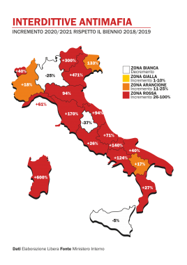 Non c’è solo il Covid a preoccupare: c’è una nuova variante, silenziosa, che in questi due anni sta infettando il tessuto economico e sociale del Paese. È la variante “criminalità”. Libera e Lavialibera presentano il dossier “La tempesta perfetta 2022. La variante Criminalità” nel quale sono stati elaborati dati e analisi delle Forze dell’Ordine, del ministero dell’Interno e degli studi e rapporti sul riciclaggio della Banca d’Italia. Sono stati elaborati i dati relativi ad alcuni reati spia (interdittive, segnalazioni sospette dell’Uif, reati di usura, di estorsione e riciclaggio denaro, delitti informatici e truffe e frodi informatiche) ovvero di quelle condotte che riflettono in sé il pericolo di infiltrazione mafiosa, mettendo a confronto i dati complessivi del biennio pre-pandemico 2018/19 con il biennio 2020/21 caratterizzato dall’emergenza. In base al rialzo legato diffondersi della variante “criminalità” sono state posizionate le regioni in zona rossa (massimo rischio dove si è registrato un incremento percentuale tra il 26-100%), zona arancione (alto rischio dove si è registrato un incremento percentuale tra il 11-25%), zona gialla (rischio moderato dove si è registrato un incremento percentuale tra il 1-10%) e zona bianca (rischio basso dove si è registrato un calo di percentuale). Quello che emerge è un Paese a macchia di leopardo, prevalentemente in zona rossa per il numero di interdittive, reati sul web e segnalazioni sospette. Nel biennio pandemico 2020/2021 le segnalazioni sospette complessivamente hanno raggiunto la cifra di 252.711 con un incremento del 24% rispetto al biennio pre-pandemico 2018/2019. Sono sette le regioni in zona rossa (Sicilia, Calabria, Puglia, Lazio, Sardegna, Basilicata, Trentino Alto Adige). Sono ben 3.919 nel periodo pandemico il numero di interdittive antimafia emesse dalle prefetture nei confronti di aziende controllate o condizionate dalle organizzazioni criminali. Dal 1° gennaio 2020 al 31 ottobre 2021 si è viaggiato alla media di 178 interdittive al mese con un incremento percentuale del 33% rispetto al biennio 2018/2019. Ben 15 regioni in zona rossa con situazioni record in Sardegna (+600%), Veneto (+471%), Trentino Alto Adige (+300) e Toscana (+170%). In termini assoluti il maggior numero di interdittive riguarda la Campania (929 nel biennio pandemico). L’analisi dei dati rileva anche un boom di incremento dei delitti informatici durante il biennio della pandemia (+39%) con ben 14 regioni in zona rossa.