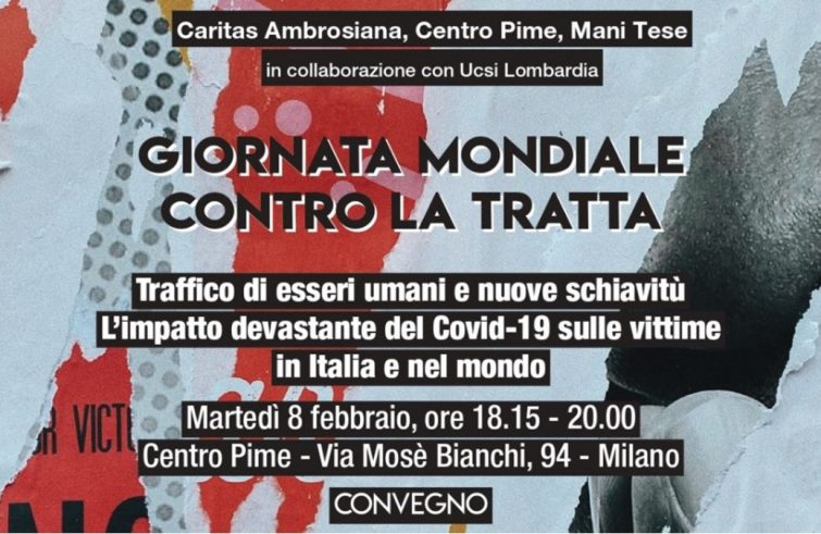 La pandemia di Coronavirus ha ulteriormente aggravato le condizioni di vita delle donne vittime di tratta costrette a prostituirsi. Spesso relegate al chiuso, subiscono violenze e abusi anche psicologici e hanno grosse difficoltà a chiedere aiuto. In occasione della Giornata mondiale contro la tratta, Centro Pime, Caritas ambrosiana e Mani tese, in collaborazione con Ucsi Lombardia, promuovono anche quest’anno un momento di riflessione e ascolto di testimonianze. Appuntamento presso il Centro Pime di Milano (ingresso da via Mosè Bianchi, 94), martedì 8 febbraio dalle ore 18.15 alle 20. L’evento si inserisce nel percorso di avvicinamento al Festival della Missione 2022. Tra i relatori: Fabio Agostoni, Comunità Papa Giovanni XXIII – Consiglio Diritti umani Ginevra; Vito Mariella, vice-direttore Caritas Bari-Bitonto ed educatore Ass.Micaela Onlus; Joy Ezekiel, autrice di “Io sono Joy”, con Mariapia Bonanate. Diretta streaming sui canali YouTube e Facebook degli organizzatori.