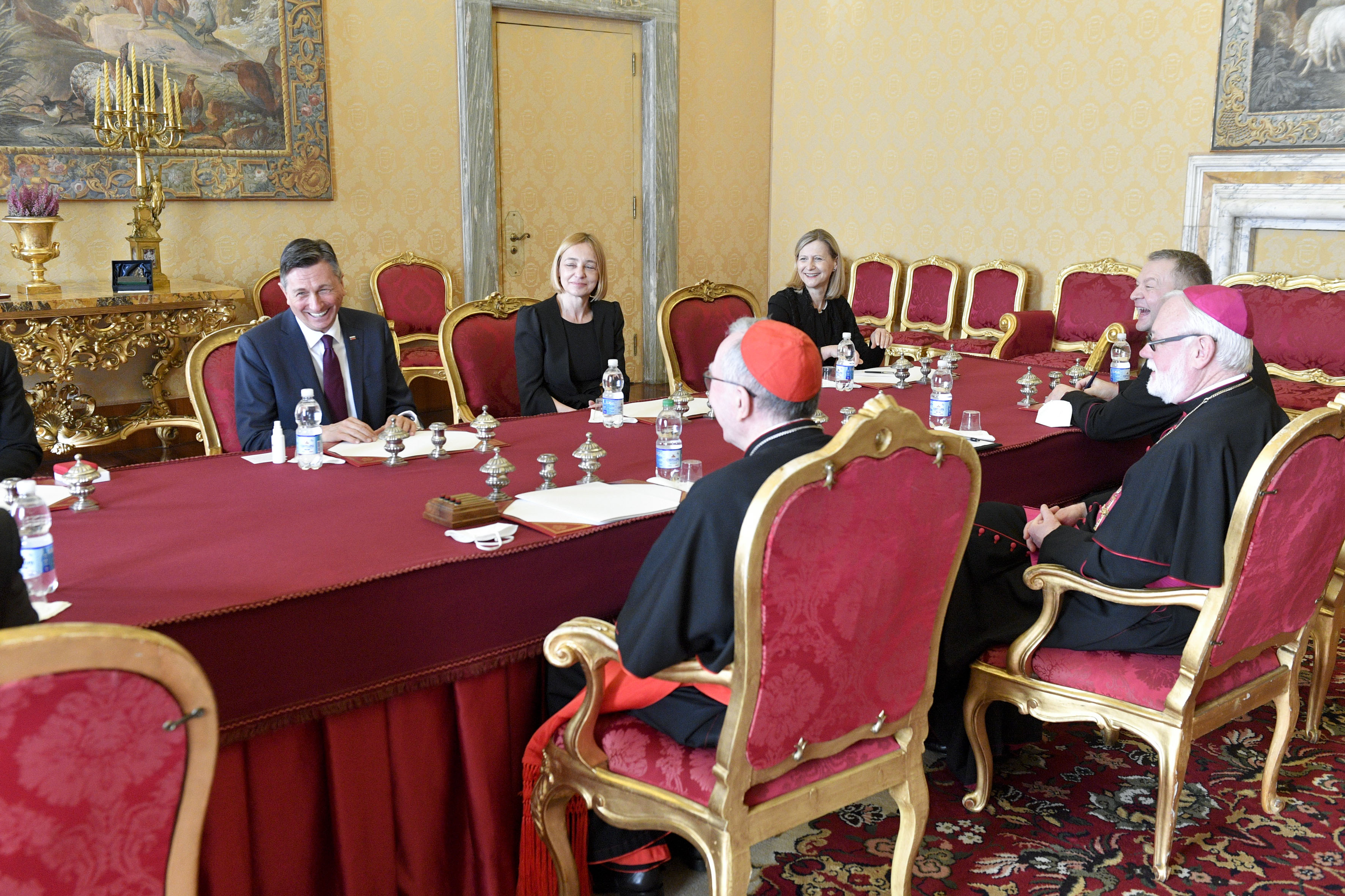 È durato circa 35 minuti il colloquio privato tra il Papa e il presidente della Repubblica di Slovenia, Borut Pahor, che successivamente ha incontrato il cardinale segretario di Stato, Pietro Parolin, accompagnato da mons. Paul Richard Gallagher, segretario per i Rapporti con gli Stati. “Nel corso dei cordiali colloqui in Segreteria di Stato, svoltisi nel quadro del trentesimo anniversario del riconoscimento della Slovenia da parte della Santa Sede e dello stabilimento dei rapporti diplomatici – riferisce la Sala Stampa della Santa Sede – è stato espresso apprezzamento per le positive relazioni bilaterali e per il dialogo in corso tra la Chiesa e le autorità civili slovene”. “Nel prosieguo della conversazione – si legge ancora nel comunicato – sono state affrontate diverse tematiche di carattere internazionale e regionale, tra le quali la cooperazione regionale, l’allargamento dell’Unione Europea ai Paesi dei Balcani occidentali e la situazione in Ucraina”. Il Papa ha donato al presidente un’opera in mosaico raffigurante “Il seminatore”, oltre ai consueti volumi dei documenti papali, al Messaggio per la Pace di quest’anno, al Documento sulla Fratellanza Umana e al libro sulla Statio Orbis del 27 marzo 2020, a cura della Libreria editrice vaticana. Il presidente sloveno ha donato al Santo Padre una “poticka”, dolce tipico del suo Paese, una raccolta di pannelli d’alveare, tipici della Slovenia, e un volume sulle api e il loro rapporto con l’uomo.