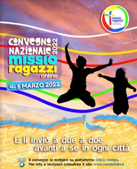 C’è ancora qualche giorno per iscriversi al Convegno nazionale Missio Ragazzi, per incaricati diocesani della Pontificia opera infanzia missionaria e per tutti gli educatori alla fede. Le iscrizioni, informa la Fondazione Missio, sono state prorogate fino al 2 marzo. L’appuntamento, in programma on line su piattaforma Cisco Webex per venerdì 4 e sabato 5 marzo, prevede l’intervento di vari relatori, tra cui mons. Valentino Bulgarelli, direttore nazionale dell’Ufficio catechistico della Cei, e suor Roberta Tremarelli, segretario generale della Pontificia opera dell’infanzia missionaria internazionale. Il tema scelto parte dal versetto del Vangelo di Luca (10,1) che descrive la missione dei 72 discepoli di Gesù: “E li inviò a due a due davanti a sé in ogni città”. Venerdì 4 marzo, nella prima sessione (ore 18-19.30), sarà don Valerio Bersano, responsabile nazionale di Missio Ragazzi, a contestualizzare il significato dell’essere missionari in ambito educativo, per poi passare la parola a monsignor Bulgarelli, che interverrà su “Lo stile sinodale nei percorsi di catechesi dei ragazzi”. Seguirà uno spazio per le domande da parte dei partecipanti.