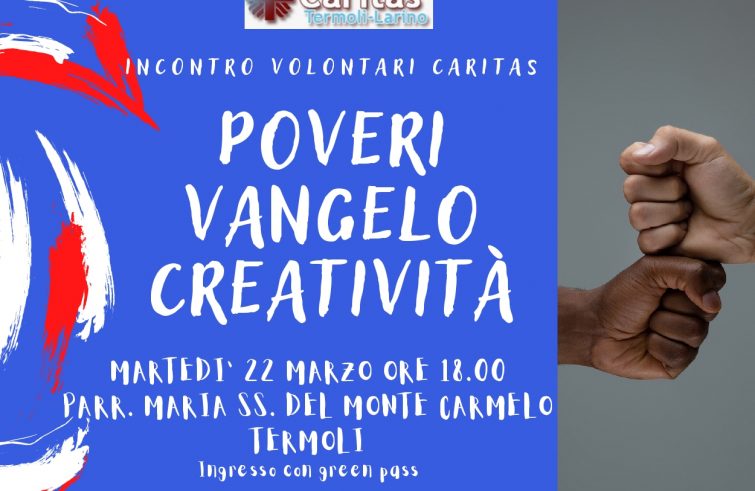 È in programma per martedì prossimo, alle 18 nella parrocchia Maria SS. del Monte Carmelo a Termoli, un incontro di formazione sul tema “Poveri, Vangelo, creatività”, dedicato a tutti i volontari delle Caritas parrocchiali e dei servizi della Caritas diocesana. Un appuntamento per approfondire le tre vie indicate da Papa Francesco alla Caritas in occasione del cinquantesimo anniversario della sua nascita, si legge nel comunicato della diocesi di Termoli-Larino, dove si precisa che i lavori si concluderanno con un laboratorio utile al confronto ed allo sviluppo. I relatori saranno Vito Chimenti, direttore della Caritas diocesana, don Gianfranco Mastroberardino, parroco della parrocchia Maria SS. del Monte Carmelo e Rossella Riccelli, facilitatrice nei percorsi di formazione promossi da Caritas Italiana.