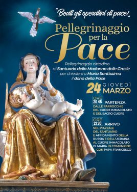 Domani sera si svolgerà a Teramo il pellegrinaggio per la pace organizzato dalla diocesi di Teramo-Atri, per affidare i popoli di Ucraina e Russia alla Vergine Maria. I fedeli recitando il rosario si muoveranno in contemporanea, alle ore 20,45, dalle parrocchie del Cuore immacolato di Maria in piazza Garibaldi, e dal Sacro cuore in via Pannella, per arrivare alle ore 21,30 circa al santuario della Madonna delle grazie, dove mons. Lorenzo Leuzzi presiederà l’atto di affidamento alla Vergine Maria per chiedere il dono della pace. L’iniziativa vuole essere un momento di comunione con Papa Francesco che, il giorno seguente alle ore 17, consacrerà Ucraina e Russia al Cuore Immacolato di Maria.