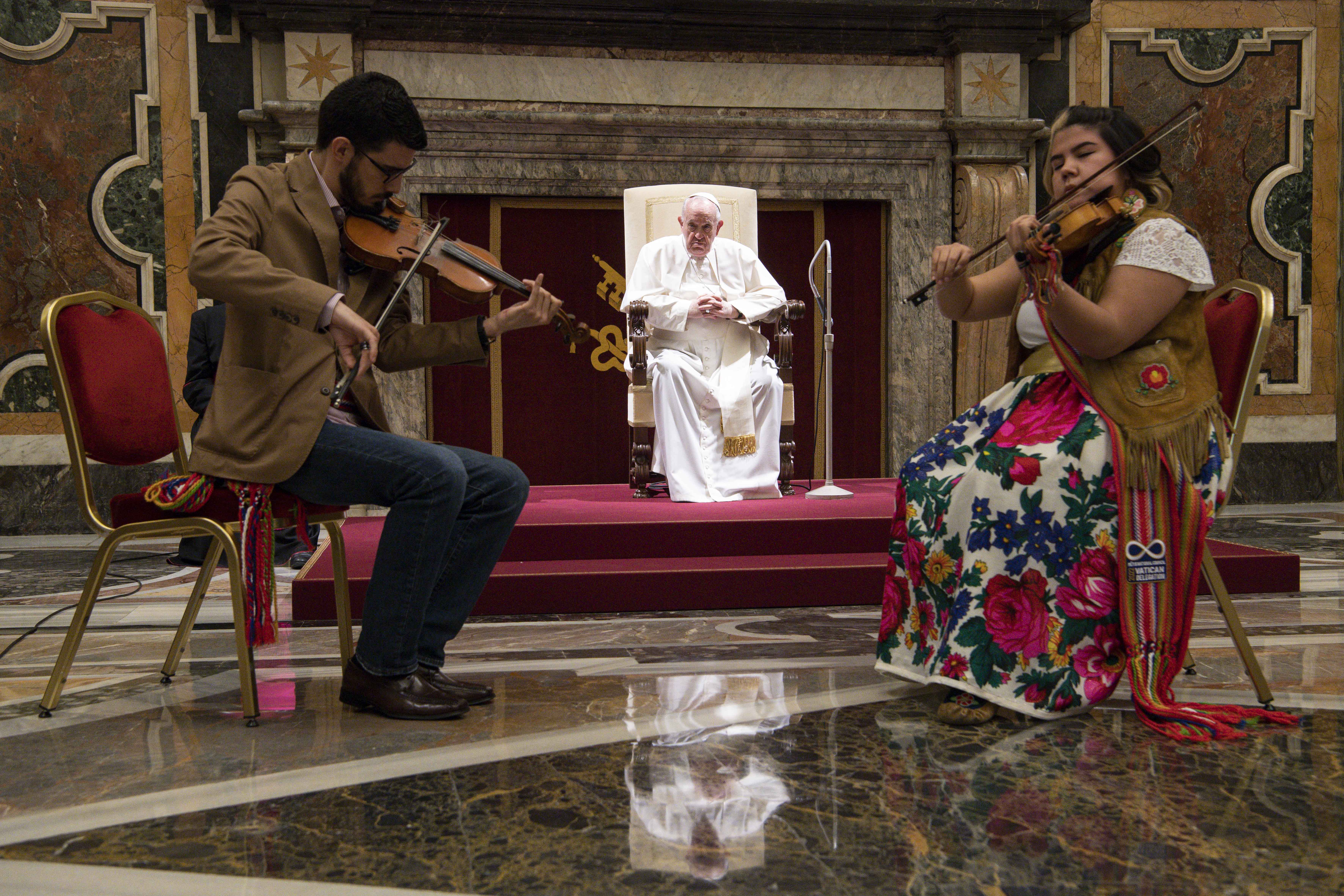 Il suono dei tamburi, la musica del violino, i canti e le danze tipiche di loro popoli. Ciascuna delle tre delegazioni First Nations, Métis e Inuit ha offerto questa mattina a Papa Francesco un’espressione culturale e cerimoniale per “consentire – si legge in una nota data ai media dalla conferenza episcopale canadese – sia al Santo Padre che al pubblico presente un’opportunità per apprezzare più pienamente la cultura e la cerimonia indigena tradizionale”. David Serkoak, batterista inuit, ha eseguito una esibizione del tamburo inuit usata per celebrare occasioni particolari come la prima caccia di un ragazzo o la nascita di un bambino. Alexander John Lamoureux e Brianna Marie Lizotte dei Métis hanno invece eseguito une esecuzione in violino, strumento particolarmente amato dai Métis che iniziarono a suonare adattando alla loro cultura ancestrale le melodie scozzesi, irlandesi e francesi. Infine le Prime Nazioni hanno eseguito una danza tradizionale. L’udienza si è conclusa con uno scambio di doni. Papa Francesco ha donato ad ogni singola delegazione un ramo di olivo in bronzo, in “segno di pace e di riconciliazione”.