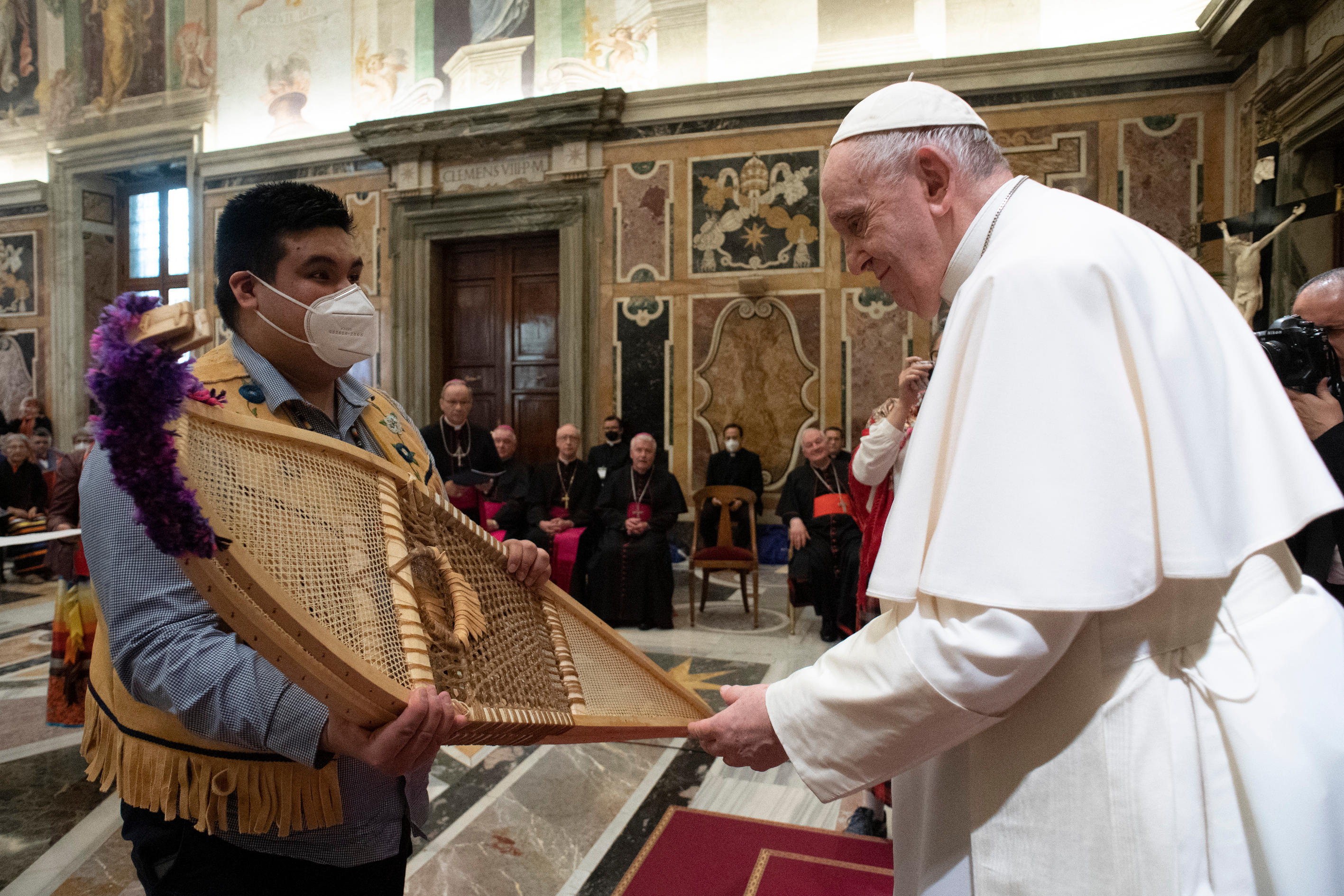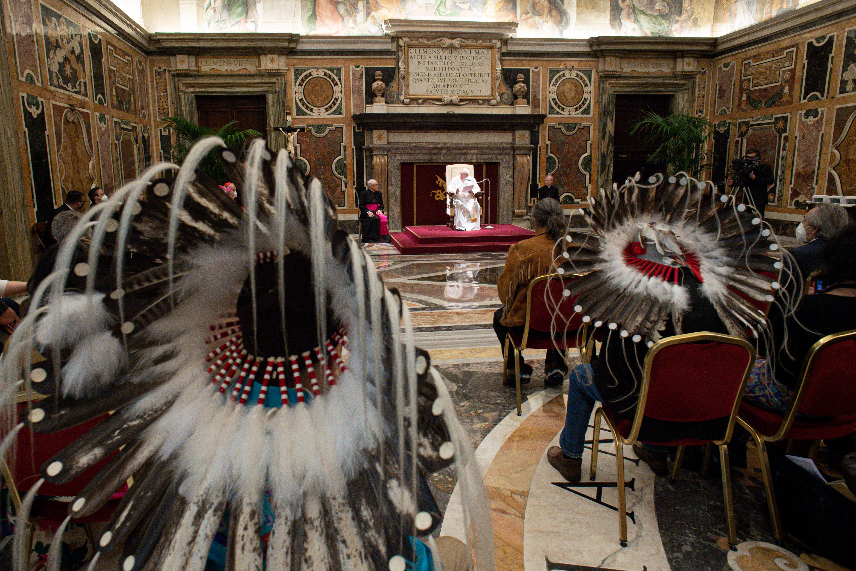 “Credendo che ci sia un solo Grande Spirito e sapendo che ci sono molte strade verso l’unico Dio, chiedo a Sua Santità di unirsi a me nella preghiera”. Con queste parole, invocando “gli spiriti” che Dio ha posto su tutte le direzione dell’est, del sud, del nord e dell’ovest della terra, Elder Fred Kelly, anziano delle First Nations, ha aperto il momento di preghiera vissuto oggi insieme a Papa Francesco, per le vittime delle scuole residenziali canadesi. Ciascun rappresentante First Nations, Métis e Inuit ha preso la parola questa mattina offrendo una preghiera nella loro lingua madre. “Santità – ha detto Elder Fred Kelly – abbiamo volato percorrendo una grande distanza sulle stesse acque che i primi esploratori di queste terre hanno navigato per raggiungere la nostra gente sulle bellissime coste della Turtle Island da dove sei venuto anche tu, mio caro fratello. Siamo profondamente grati che abbiate ricevuto la nostra delegazione di Anziani, i Custodi della Saggezza dei Secoli dalla ricca diversità di modi di vita, lingue e spiritualità indigene con cui il Grande Spirito ci ha benedetto attraverso i nostri amati antenati”. “E’ lo Spirito della nostra preghiera che conta, non le lingue con cui la esprimiamo. Santità, lei capisce di cosa sto parlando. Dio Creatore, ti chiediamo, ti imploriamo i doni sacri dei nostri popoli, amore, gentilezza, rispetto, verità, coraggio e umiltà”. “Possa il Creatore benedire il nostro incontro così che possiamo camminare in futuro” e “trovare la riconciliazione e la guarigione di cui le prime generazioni hanno bisogno”. Poi Elder Kelly ha rivolto una preghiera affinchè tutti i bimbi strappati alle loro famiglie e scomparsi anonimamente nelle tombe, “possano tornare dalle persone che li hanno amati e i loro genitori e parenti ritrovare pace e conforto”. Ha poi preso la parola Elder Emile Janvier della Métis Nation, anche lui uno dei sopravvissuti alle scuole residenziali. “Preghiamo per coloro nelle nostre comunità che lottano a causa dei danni subiti. Perché trovino forza in questo cammino di riconciliazione”. La delegazione Inuit ha infine intonato la preghiera del “Padre nostro”, in lingua Inuktitu.