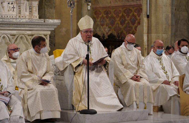 “Il popolo del nostro tempo manifesta un particolare bisogno di essere aiutato a recuperare la dimensione soprannaturale delle nostre esperienze umane. Soprattutto in queste settimane, in cui abbiamo dovuto subire la vicinanza della guerra accanto a noi e ci siamo misurati con le sofferenze, che in altre parti del mondo non hanno mai cessato di sconvolgere la vita della gente, si rende palese una riflessione alta sul senso della vita praticato nel nostro tempo dall’Occidente”. Lo ha affermato, ieri sera, mons. Riccardo Fontana, arcivescovo di Arezzo-Cortona-Sansepolcro, nell’omelia della messa crismale presieduta ieri sera in cattedrale.