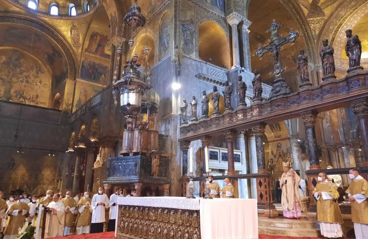 “Quest’anno – con grande dolore – celebriamo la Messa crismale mentre nel cuore dell’Europa, non tanto lontano da noi, infuria una guerra sempre più violenta, crudele e insensata della quale non sappiamo con esattezza gli esiti che, però, intuiamo devastanti; è una guerra in cui, alla fine, tutti risulteranno perdenti e i cui segni rimarranno per generazioni. Tacciano le armi e si torni a parlare!”. E’ l’accorato appello lanciato dal patriarca di Venezia Francesco Moraglia, nell’omelia della Messa crismale celebrata questa mattina nella basilica cattedrale di San Marco. “La Messa del Crisma – ha quindi spiegato – esprime la bellezza e la pluriformità del sacerdozio di Cristo, come si evince dal prefazio che fra poco pregheremo”. “Con animo riconoscente viviamo quella comunione che non riguarda solo i presbiteri e il presbiterio – e, quindi, il sacramento dell’ordine – ma tutta la Chiesa, a partire dal sacramento del battesimo che ci unisce in vera e reale fraternità”.