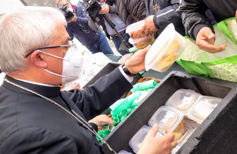 Nel corso della visita, l’arcivescovo ha assistito alle operazioni di preparazione dei pasti – ogni giorno i volontari effettuano circa 700 interventi alimentari – e poi ha partecipato attivamente e in prima persona al momento della distribuzione all’esterno della struttura. Nel corso della giornata, dopo il momento di preghiera comune, si è registrata anche la visita ai diversi servizi della struttura: cucina, sala mensa, centro di ascolto, consulenza legale, rete sanitaria e comunicazione.