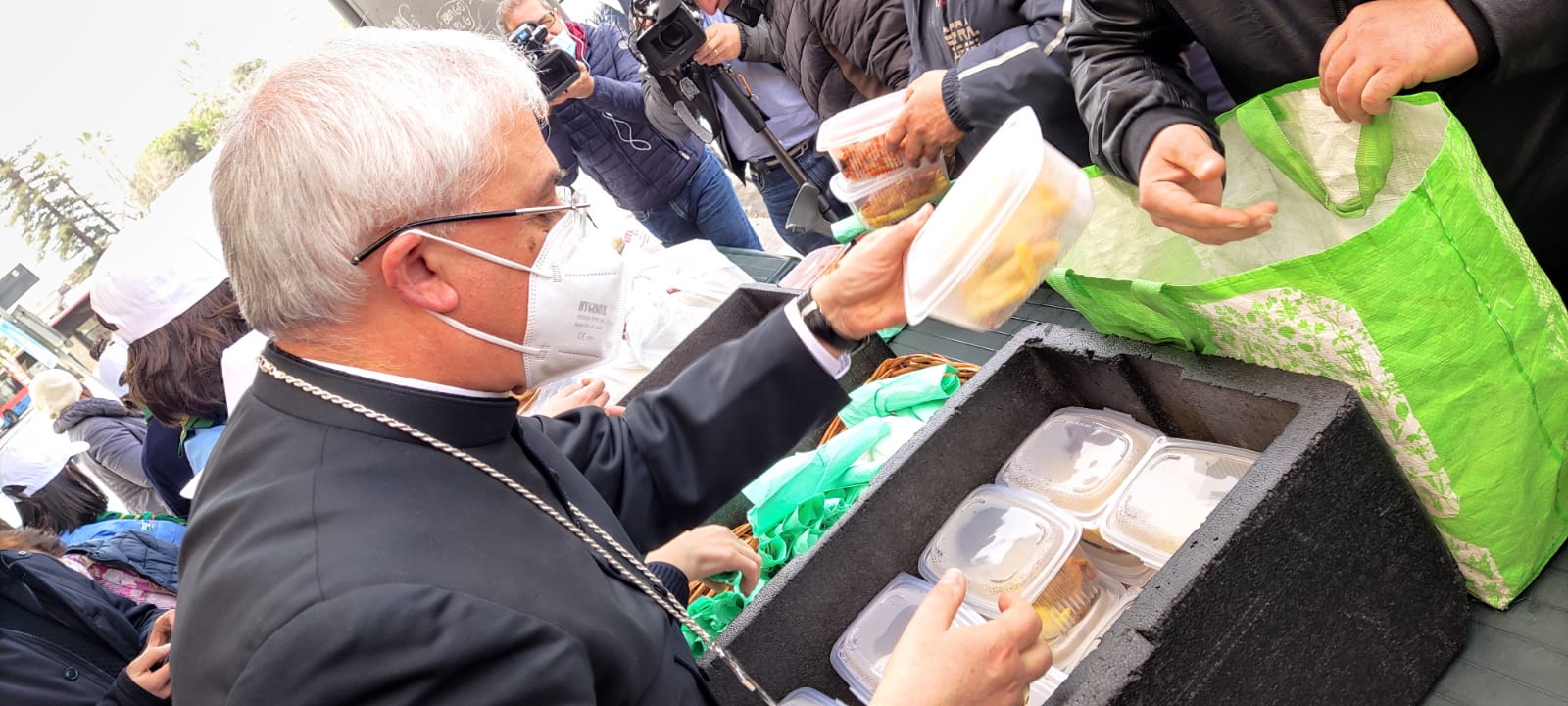 Nel corso della visita, l’arcivescovo ha assistito alle operazioni di preparazione dei pasti – ogni giorno i volontari effettuano circa 700 interventi alimentari – e poi ha partecipato attivamente e in prima persona al momento della distribuzione all’esterno della struttura. Nel corso della giornata, dopo il momento di preghiera comune, si è registrata anche la visita ai diversi servizi della struttura: cucina, sala mensa, centro di ascolto, consulenza legale, rete sanitaria e comunicazione.