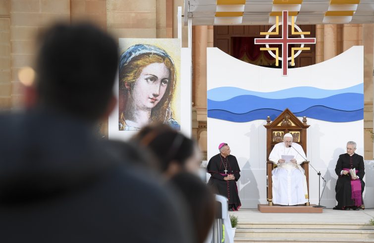 “Ritornare all’inizio significa anche sviluppare l’arte dell’accoglienza”. Ne è convinto il Papa, che dal Santuario di Ta’ Pinu a Gozo, il più grande santuario mariano dell’arcipelago maltese, è tornato sul tema dell’accoglienza come “stile perenne del discepolato”. “Il culto a Dio passa per la vicinanza al fratello”, ha ribadito: “Quanto è importante nella Chiesa l’amore tra i fratelli e l’accoglienza del prossimo!”. “L’accoglienza reciproca, non per pura formalità ma in nome di Cristo, è una sfida permanente”, ha spiegato Francesco: “Lo è anzitutto per le nostre relazioni ecclesiali, perché la nostra missione porta frutto se lavoriamo nell’amicizia e nella comunione fraterna. Siete due belle comunità, Malta e Gozo, Gozo e Malta, non so qual è la più importante o quale è la prima: proprio come due erano Maria e Giovanni! Le parole di Gesù sulla croce siano allora la vostra stella polare, per accogliervi a vicenda, creare familiarità, lavorare in comunione! E sempre andando avanti nell’evangelizzazione, perché la gioia della Chiesa è evangelizzare!”. “Non possiamo accoglierci solo tra di noi, all’ombra delle nostre belle Chiese, mentre fuori tanti fratelli e sorelle soffrono e sono crocifissi dal dolore, dalla miseria, dalla povertà e dalla violenza”, il monito. “Vi trovate in una posizione geografica cruciale, che si affaccia sul Mediterraneo come polo di attrazione e approdo di salvezza per tante persone sballottate dalle tempeste della vita che, per motivi diversi, arrivano sulle vostre sponde”, le parole dirette ai maltesi: “Nel volto di questi poveri è Cristo stesso che si presenta a voi. Questa è stata l’esperienza dell’apostolo Paolo che, dopo un terribile naufragio, fu calorosamente accolto dai vostri antenati. Ecco il Vangelo che siamo chiamati a vivere: accogliere, essere esperti di umanità, accendere fuochi di tenerezza quando il freddo della vita incombe su coloro che soffrono”. “E anche in questo caso da un’esperienza drammatica nacque qualcosa di importante, perché Paolo annunciò e diffuse il Vangelo e, in seguito, tanti annunciatori, predicatori, sacerdoti e missionari seguirono le sue orme, spinti dallo Spirito Santo, per portare avanti la gioia della Chiesa che è evangelizzare”, ha sottolineato Francesco: “Vorrei dire un grazie speciale a loro: ai numerosi missionari maltesi che diffondono nel mondo intero la gioia del Vangelo, ai tanti sacerdoti, alle religiose e ai religiosi e a tutti voi. Siete un’isola piccola, ma dal cuore grande. Siete un tesoro nella Chiesa e per la Chiesa. Per custodirlo, bisogna tornare all’essenza del cristianesimo: all’amore di Dio, motore della nostra gioia, che ci fa uscire e percorrere le strade del mondo; e all’accoglienza del prossimo, che è la nostra testimonianza più semplice e bella nel mondo. E così andare avanti, percorrendo le strade del mondo, perché la gioia della Chiesa è evangelizzare”.