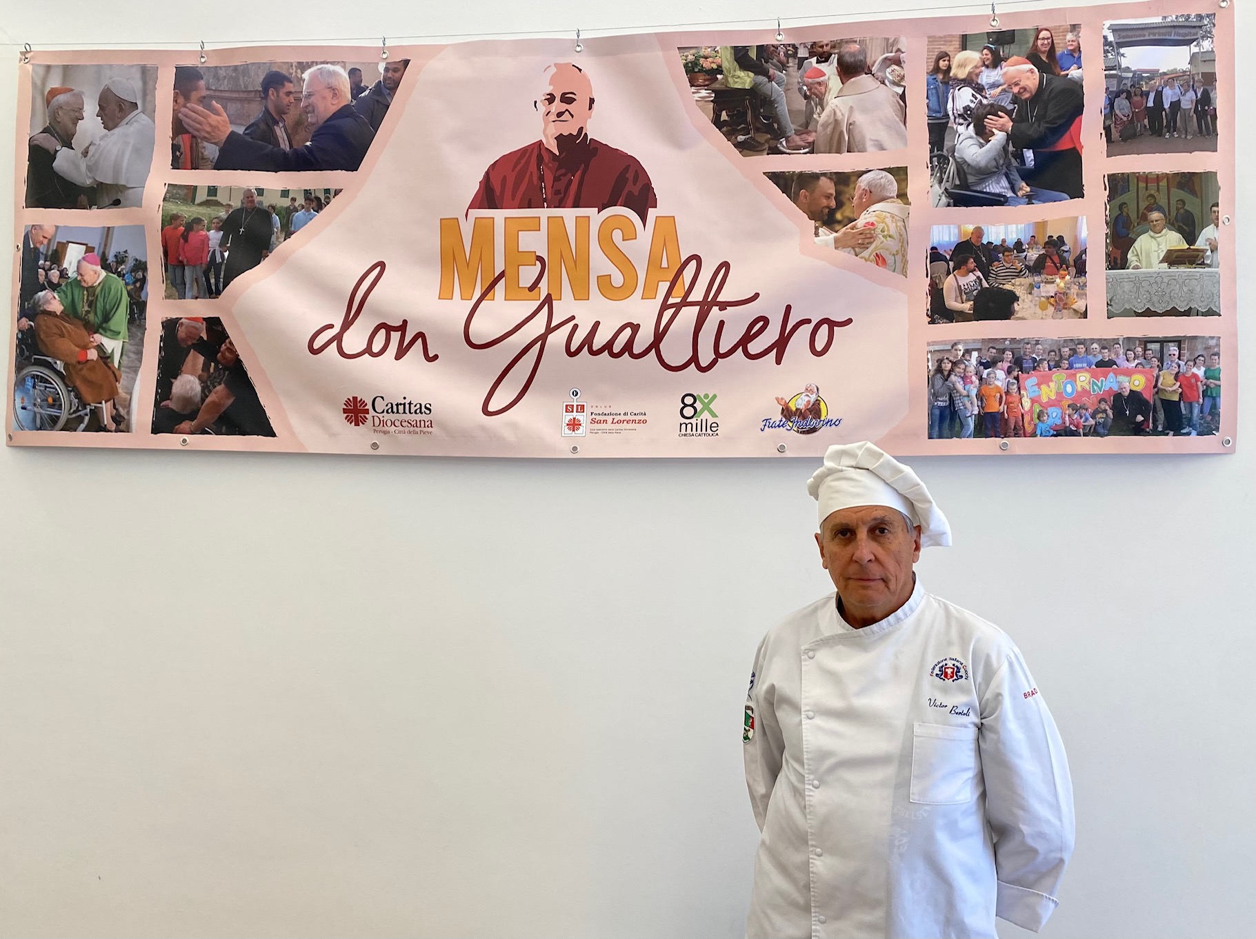 Superata l’emergenza da Covid-19, la mensa “Don Gualtiero” potrà ospitare fino ad un massimo di 75 persone, le cui pietanze saranno servite attraverso self-service. Ad annunciarlo è Victor Bertoli, ingegnere elettromeccanico italo-argentino a riposo con diploma di cuoco rilasciato dall’Università dei Sapori di Perugia, volontario Caritas. “Anche il card. Gualtiero Bassetti, venerdì prossimo, pranzerà ritirando il pasto al self-service come tutti i commensali – precisa Victor –, così da inaugurare anche questo sistema di distribuzione che stiamo collaudando da un mese nell’ospitare un gruppo di profughi ucraini, come anche l’intero servizio cucina-mensa affidato a volontari ben formati la cui opera è fondamentale. Essi, quotidianamente, saranno una decina impegnati nei servizi cucina, sala e accoglienza. Quest’ultima ha la sua importanza ed è coordinata dall’assistente sociale del Centro di ascolto diocesano”. Inoltre, sottolinea il responsabile, “consegneremo il pasto da asporto per la domenica e i festivi, ma è importante soddisfare il più possibile i nostri “clienti” nel servire loro pietanze di qualità come in un normale ristorante”.