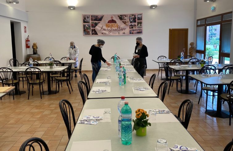 Nella fase di avvio e nel rispetto delle norme anti Covid-19, la nuova mensa “Don Gualtiero” della Caritas diocesana di Perugia-Città della Pieve, che sarà inaugurata venerdì, ospiterà, per il momento solo a pranzo (da lunedì a sabato, ore 12-14), fino a 50 persone e non soltanto in gravi difficoltà economiche (queste accederanno gratuitamente al servizio dopo essersi rivolte al Centro di ascolto diocesano la cui sede è sempre presso il “Villaggio della Carità”, aperto dal lunedì al venerdì, dalle 9 alle 13), ma anche persone sole che intendono consumare un pasto in compagnia (queste, invece, potranno accedere alla mensa versando un contributo volontario). I pasti (primo, secondo, contorno e frutta-dessert) saranno cucinati in loco da cuochi volontari utilizzando materie prime di qualità donate o acquistate. Gli ospiti troveranno un clima molto familiare grazie all’accoglienza riservata loro da 28 volontari che a turno presteranno servizio in cucina e in sala mensa.