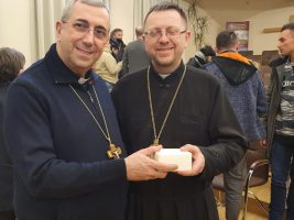 Mons. Satriano torna a Bari portando con sé un grande bagaglio di ricordi, ma anche “tristezza, dolore, il suono delle sirene giorno e notte, allarme di probabili attacchi aerei e missilistici tengono sotto pressione costante la popolazione. Mentre il popolo della Carovana della pace riposava nella palestra del Seminario di Leopoli, all’improvviso un allarme ha costretto i partecipanti a scendere nel bunker dello stabile. Personalmente sono stato ospitato presso la casa dei padri Orionini dove molte mamme profughe dai luoghi di guerra sono accolte. In quel frangente, si è sentito il vagito di un bambino nato la mattina precedente: un segnale di speranza, la vita che grida sulla morte. Credo che nella notte che il mondo sta vivendo sia stata accesa una piccola luce segno di benedizione e di pace per molti”.