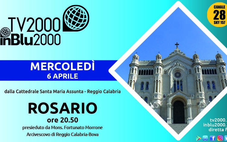 Torna l’appuntamento con “Prega con noi”. Tv2000 e InBlu2000 invitano i fedeli, le famiglie e le comunità religiose a ritrovarsi oggi, mercoledì 6 aprile alle 20.50, per recitare insieme il Rosario trasmesso su Tv2000 (canale 28 e 157 Sky) e InBlu2000, oltre che su Facebook. La preghiera sarà trasmessa dalla cattedrale Santa Maria Assunta di Reggio Calabria, con mons. Fortunato Morrone, arcivescovo di Reggio Calabria-Bova.