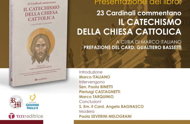 Si terrà lunedì 16 maggio a Roma, presso il Senato (ore 17, palazzo Giustiniani, sala Zuccari, via della Dogana Vecchia 29), la presentazione del libro “23 cardinali commentano il Catechismo della Chiesa cattolica” curato da Marco Italiano (Tau Editrice). L’evento è promosso su iniziativa della senatrice Paola Binetti, in collaborazione con l’Associazione Res Magnae e la Fondazione Giovanni Paolo II. Il volume è aperto dalla prefazione a firma del card. Gualtiero Bassetti, presidente della Conferenza episcopale italiana. All’incontro del 16 maggio parteciperanno, oltre alla senatrice Binetti, il direttore di Avvenire, Marco Tarquinio, e Pierluigi Castagnetti, ultimo segretario del Partito Popolare Italiano e presidente della Fondazione ex campo di concentramento Fossoli di Carpi. A introdurre sarà l’autore del libro, Marco Italiano, mentre le conclusioni saranno affidate al card. Angelo Bagnasco. Modera Paola Severini Melograni. Alla stesura del volume hanno partecipato, curando ciascuno un tema specifico, i seguenti cardinali: Ennio Antonelli, Angelo Bagnasco, Ricardo Blázquez Perez, Domenico Calcagno, Angelo Comastri, Paul Josef Cordes, Angelo De Donatis, Salvatore De Giorgi, Kevin Joseph Farrell, Zenon Grocholewski, Edoardo Menichelli, Francesco Monterisi, Gerhard Ludwig Müller, Carlos Osoro Sierra, Mauro Piacenza, Béchara Boutros Rai, Giovanni Battista Re, Franc Rodé, Leonardo Sandri, Robert Sarah, Angelo Scola, Jean-Louis Tauran, Peter Kodwo Appiah Turkson.