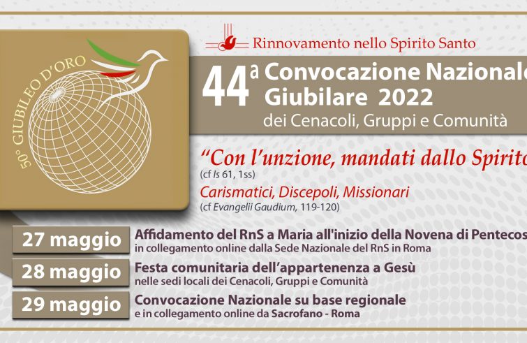 “È ancora tempo di Rinnovamento – dichiara Martinez – perché è sempre il tempo dello Spirito! E tempo di varcare ancora, con l’effusione dello Spirito Santo, le ‘due porte’ della Pentecoste: il Cenacolo e la Piazza, per pregare ed evangelizzare, per vivere come discepoli-missionari un nuovo risveglio carismatico, una rinnovata comunione fraterna ed ecclesiale. Siamo desiderosi di fare ancora esperienza dell’unzione dello Spirito, di risentire la grazia di stare insieme dopo le tante difficoltà prodotte dalla pandemia, per accogliere nuovi impulsi carismatici, per un vero e unitario cammino di vita nuova. È Giubileo d’Oro del Rinnovamento in Italia! ‘Giubileo di ringraziamento’, per i nostri 50 anni di storia sacra: ogni Regione, in ‘stile sinodale’, avrà modo di esprimere la bellezza del Rinnovamento nello Spirito facendo festa, ricordando e attualizzando quanto lo Spirito ci ha concesso di vivere e ci concede. ‘Giubileo di testimonianza’, guardando al cammino che ci sta dinanzi: ogni fratello e sorella è chiamato a lasciarsi guidare dallo Spirito, a uscire dalle secche spirituali, a ridare slancio e perseveranza alla vita nuova personale e comunitaria”. Info: www.rinnovamento.org.
