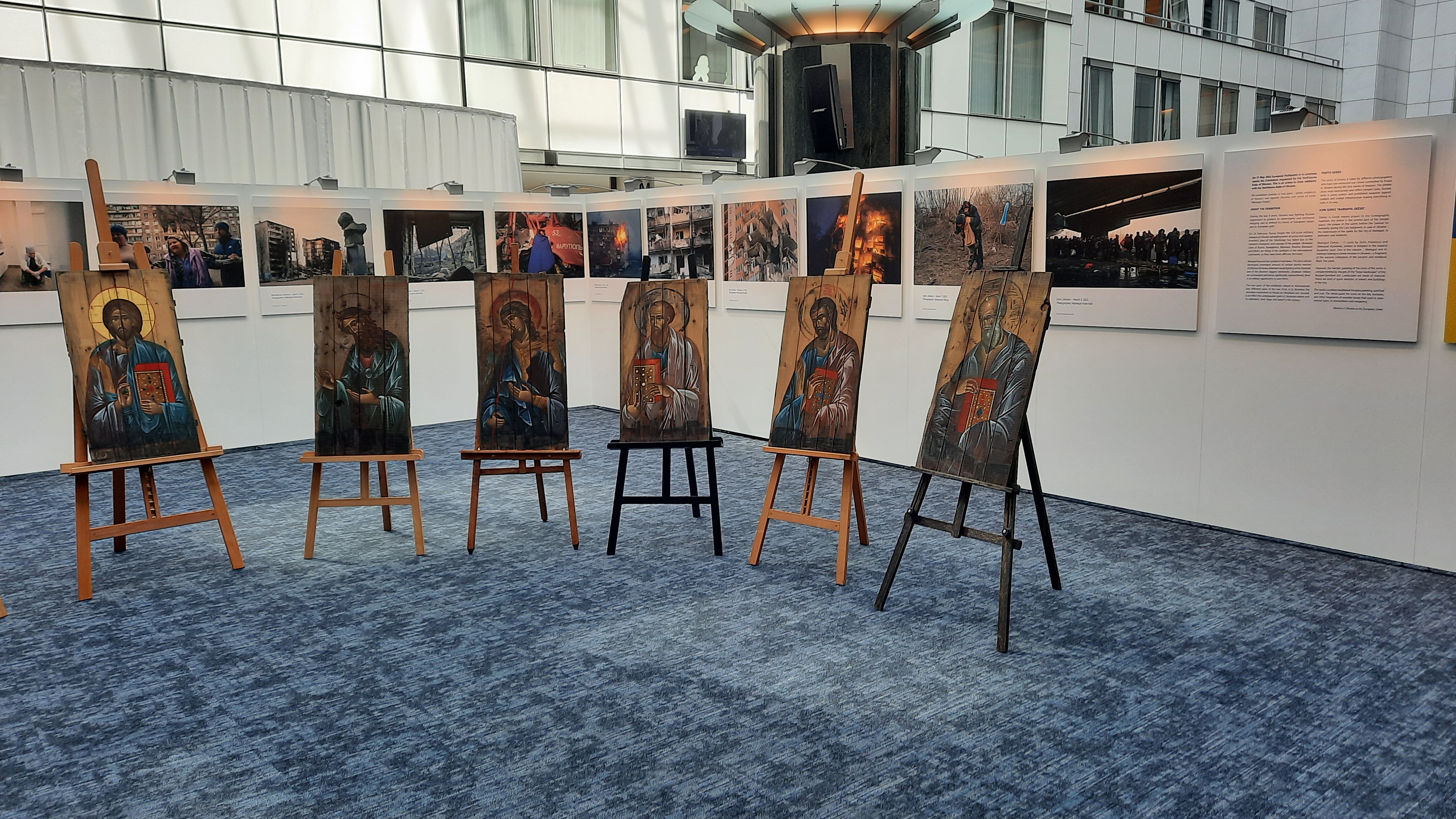L’esposizione, al terzo piano dell’edificio principale del Parlamento, lo stesso in cui è collocato l’emiciclo che ha ospitato ieri e oggi la plenaria, è composta di due parti: una raccolta di fotografie che illustrano la violenza e la tragedia della guerra, con le sofferenze imposte al popolo ucraino; una serie di icone realizzate nella città martire di Mariupol. La mostra intende inoltre rappresentare un segno di solidarietà e di vicinanza tra il Parlamento europeo e la Rada (Parlamento) di Kiev.