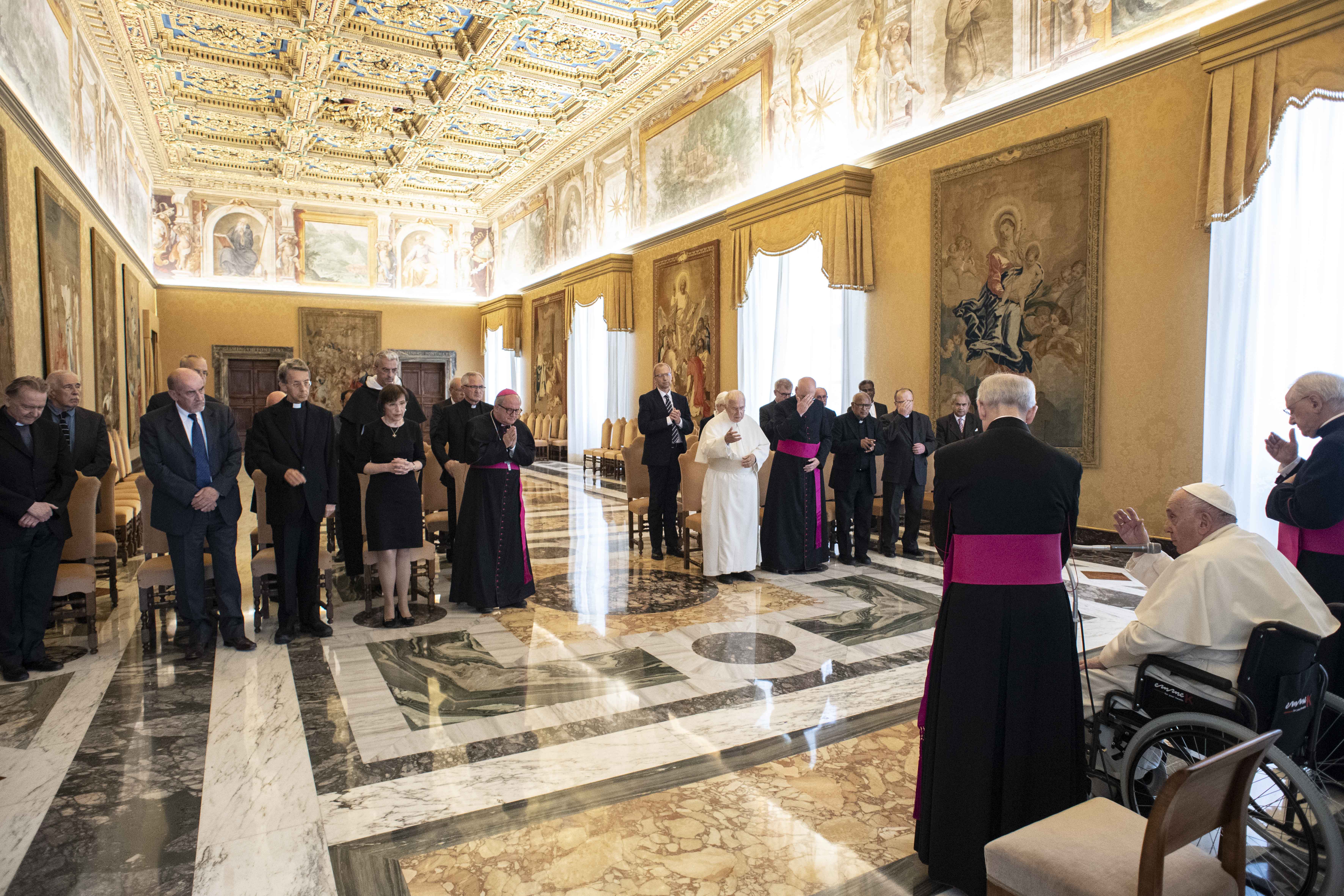 “L’adesione alla realtà saldamente documentata resta indispensabile allo storico, senza fughe idealistiche in un passato che si suppone consolatorio. Lo storico del cristianesimo dovrebbe essere attento a cogliere la ricchezza delle diverse realtà nelle quali, attraverso i secoli, il Vangelo si è incarnato e continua a incarnarsi, regalando capolavori che rivelano l’azione feconda dello Spirito Santo nella storia. La storia della Chiesa è luogo di incontro e di confronto in cui si sviluppa il dialogo tra Dio e l’umanità; e ad essa è predisposto chi sa unire il pensiero alla concretezza. Teoria e prassi – unite – conducono alla verità”. Lo ha detto Papa Francesco ricevendo oggi in udienza i Membri del Pontificio Comitato di Scienze Storiche in occasione della Sessione Plenaria. “Il vostro Comitato, voluto dal Venerabile Pio XII per essere al servizio del Papa, della Santa Sede e delle Chiese locali – ha aggiunto il Pontefice – è certamente tenuto a promuovere lo studio della storia, indispensabile al laboratorio della pace, quale via di dialogo e di ricerca di soluzioni concrete e pacifiche per risolvere i dissidi, e per conoscere più a fondo le persone e le società. Mi auguro – è stato l’auspicio del Papa – che gli storici contribuiscano con le loro ricerche, con le loro analisi delle dinamiche che segnano le vicende umane, all’avvio coraggioso di processi di confronto nel concreto della storia dei popoli e degli Stati”. Allargando lo sguardo alla attualità, Papa Francesco ha ricordato come “l’attuale situazione in Europa orientale non vi consente, per il momento, di incontrare alcuni dei vostri interlocutori abituali nell’ambito dei convegni che, da decenni, vi vedono collaborare sia con l’Accademia Russa delle Scienze di Mosca, sia con gli storici del Patriarcato Ortodosso di Mosca. Ma sono sicuro che saprete cogliere le occasioni giuste per riprendere e intensificare questo lavoro comune, che sarà un contributo prezioso volto a favorire la pace”. “Se la storia è spesso pervasa da eventi bellici, da conflitti – ha detto Bergoglio – lo studio della storia mi fa pensare all’ingegneria dei ponti, che rende possibili rapporti fruttuosi tra le persone, tra credenti e non credenti, tra cristiani di differenti confessioni. La vostra esperienza è ricca di insegnamenti. Ne abbiamo bisogno, perché è portatrice della memoria storica necessaria per cogliere la posta in gioco nel fare storia della Chiesa e dell’umanità: quella di offrire un’apertura verso la riconciliazione dei fratelli, la guarigione delle ferite, la reintegrazione dei nemici di ieri nel concerto delle nazioni, come seppero fare, dopo la seconda guerra mondiale, i Padri fondatori dell’Europa unita”.