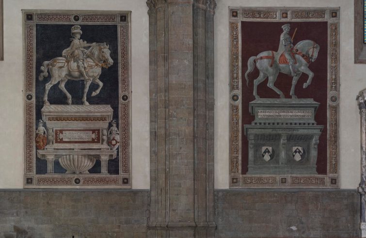 Verranno sottoposti a restauro due capolavori della storia dell’arte conservati nel duomo di Firenze: gli affreschi dei condottieri Giovanni Acuto e Niccolò da Tolentino nel duomo di Firenze, realizzati dai grandi artisti rinascimentali Paolo Uccello e Andrea del Castagno. Il restauro commissionato e diretto dall’Opera di Santa Maria del Fiore – sotto la tutela della Soprintendenza Archeologia, belle arti e paesaggio per la città metropolitana di Firenze e le province di Pistoia e Prato – è reso possibile grazie al finanziamento di American Express. L’intervento è stato affidato dall’Opera alla restauratrice Daniela Dini che già nel 2000 si era occupata delle due opere.