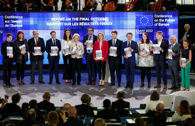“Mia figlia è nata durante la Conferenza sul futuro dell’Europa, come le raccomandazioni”: è stata Linda Mustaki, giovane mamma francese la cui foto in emiciclo con la figlia in braccio è diventata virale tra gli europeisti, ad aprire oggi a Strasburgo l’evento conclusivo della Conferenza con la consegna ufficiale delle 49 raccomandazioni e 300 proposte ai leader europei. “Ho imparato tre cose”, ha detto l’eurodeputato Guy Verhofstadt, uno dei tre copresidenti del comitato esecutivo, prendendo la parola nell’emiciclo pieno: “Nelle nostre società c’è più coerenza e unità di quanto pensiamo”; “la gente non ha paura dei cambiamenti”, tanto più necessari ora poiché “l’integrazione non è più una scelta ma una necessità per sopravvivere”; e infine “non c’è contraddizione tra democrazia partecipativa e rappresentativa”, essendo la prima un antidoto alle divisioni e allo scontro. Il ministro francese Clément Beaune (per il Consiglio) ha ricordato come nel 2021, quando è stata lanciata, la Conferenza fosse una “scommessa”, mentre un anno dopo è diventata un successo: “Abbiamo avuto la bella idea di contare su di voi”, ha ancora detto rivolgendosi ai cittadini, “ora contate su di noi” per la realizzazione delle proposte. Per la terza co-presidente, la commissaria Dubravka Suica, “la democrazia europea non sarà più la stessa” dopo l’esperienza della Conferenza che ha mostrato come “mettere i cittadini al centro sia stata la scelta giusta”. E ha concluso: “La democrazia europea fa più rumore delle bombe di Putin”.