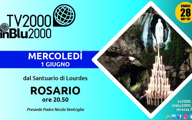 Torna l’appuntamento con “Prega con noi”. Tv2000 e InBlu2000 invitano i fedeli, le famiglie e le comunità religiose a ritrovarsi oggi, mercoledì 1° giugno alle 20.50, per recitare insieme il Rosario trasmesso su Tv2000 (canale 28 e 157 Sky), InBlu2000 e su Facebook. La preghiera sarà trasmessa dal santuario di Lourdes (Francia), guidata da padre Nicola Ventriglia, coordinatore dei cappellani italiani.