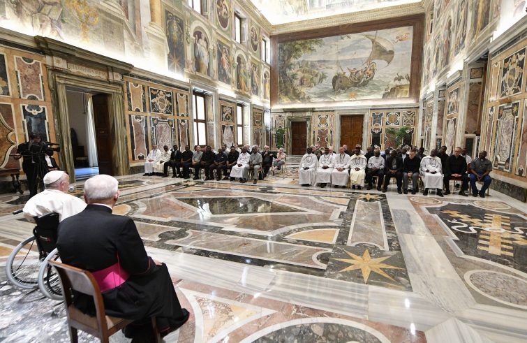 Charles de Foucauld “ha molto da dire anche a voi, come a tutti i cristiani del nostro tempo”. Ne è convinto il Papa, che ricevendo in udienza i partecipanti al Capitolo generale dei Missionari d’Africa (Padri Bianchi) ha ricordato come il santo, da lui canonizzato il 15 maggio scorso, “a partire dalla sua intensa esperienza di Dio, ha compiuto un cammino di trasformazione fino a sentirsi fratello di tutti”. “Preghiera e fraternità: la Chiesa deve tornare a questo nucleo essenziale, a questa semplicità irradiante, naturalmente non in modo uniforme, ma nella varietà dei suoi carismi, dei suoi ministeri e delle sue istituzioni; ma tutto deve lasciar trasparire questo nucleo originario, che risale alla Pentecoste e alla prima comunità, descritta negli Atti degli Apostoli”, l’esortazione del Papa: “Spesso noi siamo portati a pensare la profezia come una realtà individuale – e questa è una dimensione che rimane sempre vera, sul modello dei profeti d’Israele –. Ma la profezia è anche e direi soprattutto comunitaria: è la comunità che dà testimonianza profetica. Penso alle vostre fraternità, formate da persone provenienti da tanti Paesi, da culture diverse. Non è facile, è una sfida che si può accettare solo contando sull’aiuto dello Spirito Santo. E poi questa vostra piccola comunità, che vive di preghiera e fraternità, è chiamata a sua volta a dialogare con l’ambiente in cui vive, con la gente, con la cultura locale. In questi contesti, dove spesso, oltre alla povertà, si sperimenta l’insicurezza e la precarietà, voi siete inviati a vivere la dolce gioia di evangelizzare”. “Questa parola la usa San Paolo VI, nella sua Evangelii nuntiandi: evangelizzare è la missione della Chiesa, evangelizzare è la gioia della Chiesa”, ha concluso a braccio: “Prendete l’Evangelii nuntiandi, che ancora oggi è vigente, e vi darà tanti spunti di riflessione”.