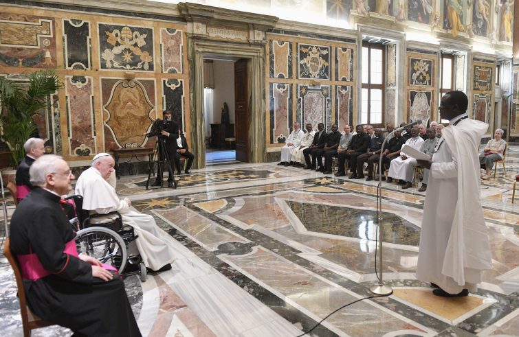 “Purtroppo, con grande dispiacere, ho dovuto rinviare il viaggio in Congo e Sud Sudan. In effetti, alla mia età non è così semplice partire in missione!”. Con queste parole il Papa si è rivolto ai partecipanti al Capitolo generale dei Missionari d’Africa (Padri Bianchi), ricevuti in udienza. “Ma le vostre preghiere e il vostro esempio mi danno coraggio, e sono fiducioso di poter visitare questi popoli, che porto nel cuore”, ha proseguito Francesco. “Cercherò di celebrare messa con la comunità congolese romana”, ha annunciato a braccio: “Era il giorno che dovevo celebrare a Kinshasa”, ha detto riferendosi a ciò che era previsto nel programma del viaggio in Congo per il 3 luglio: “porterò Kinshasa a San Pietro, e lì celebrerò con tutti i congolesi romani, che sono tanti”. “Guardare al passato con gratitudine è segno di buona salute spirituale”, ha affermato il Papa, secondo il quale “chi non sa ringraziare Dio per i doni che egli ha seminato lungo il cammino – pur faticoso e a volte doloroso – non ha nemmeno un animo speranzoso, aperto alle sorprese di Dio e fiducioso nella sua provvidenza”. “Questo atteggiamento spirituale è decisivo perché possano maturare i germi di vocazione che il Signore suscita con il suo Spirito e la sua Parola”, la tesi di Francesco: “Una comunità in cui si sa dire ‘grazie’ a Dio e ai fratelli, e in cui ci si aiuta a vicenda a sperare nel Signore Risorto è una comunità che attira e sostiene coloro che sono chiamati. Dunque, avanti così, con gratitudine e speranza!”.
